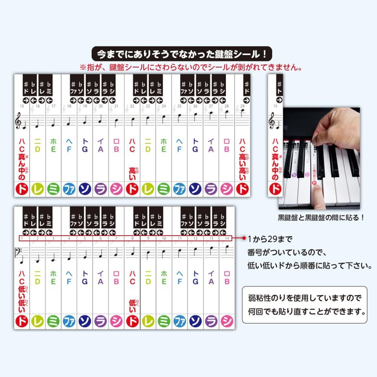 鍵盤シール 29鍵盤 ピアノ キーボード 初心者 鍵盤補助 ドレミ シール 音楽 独学 レッスン 教材
