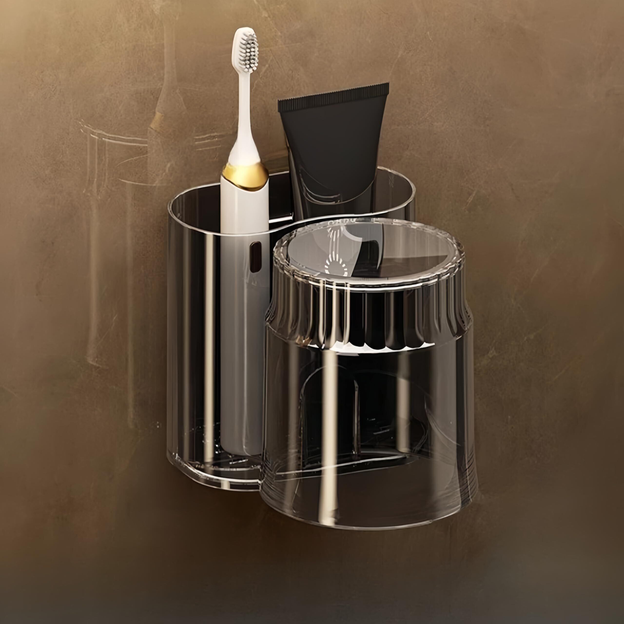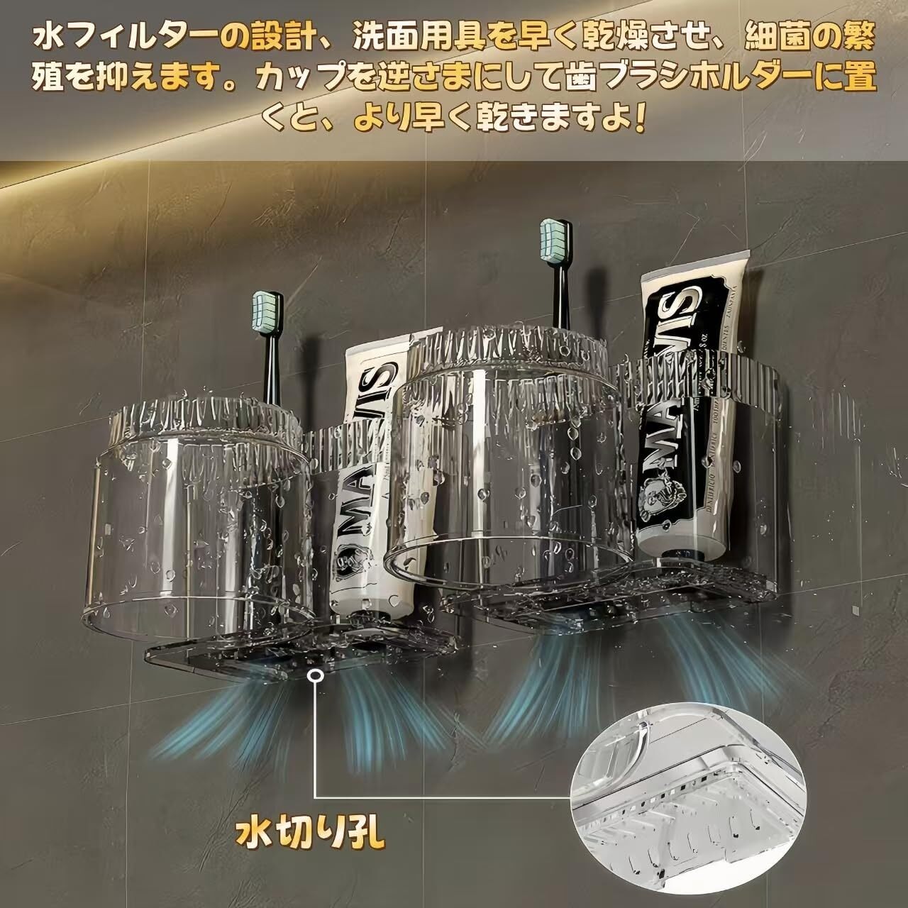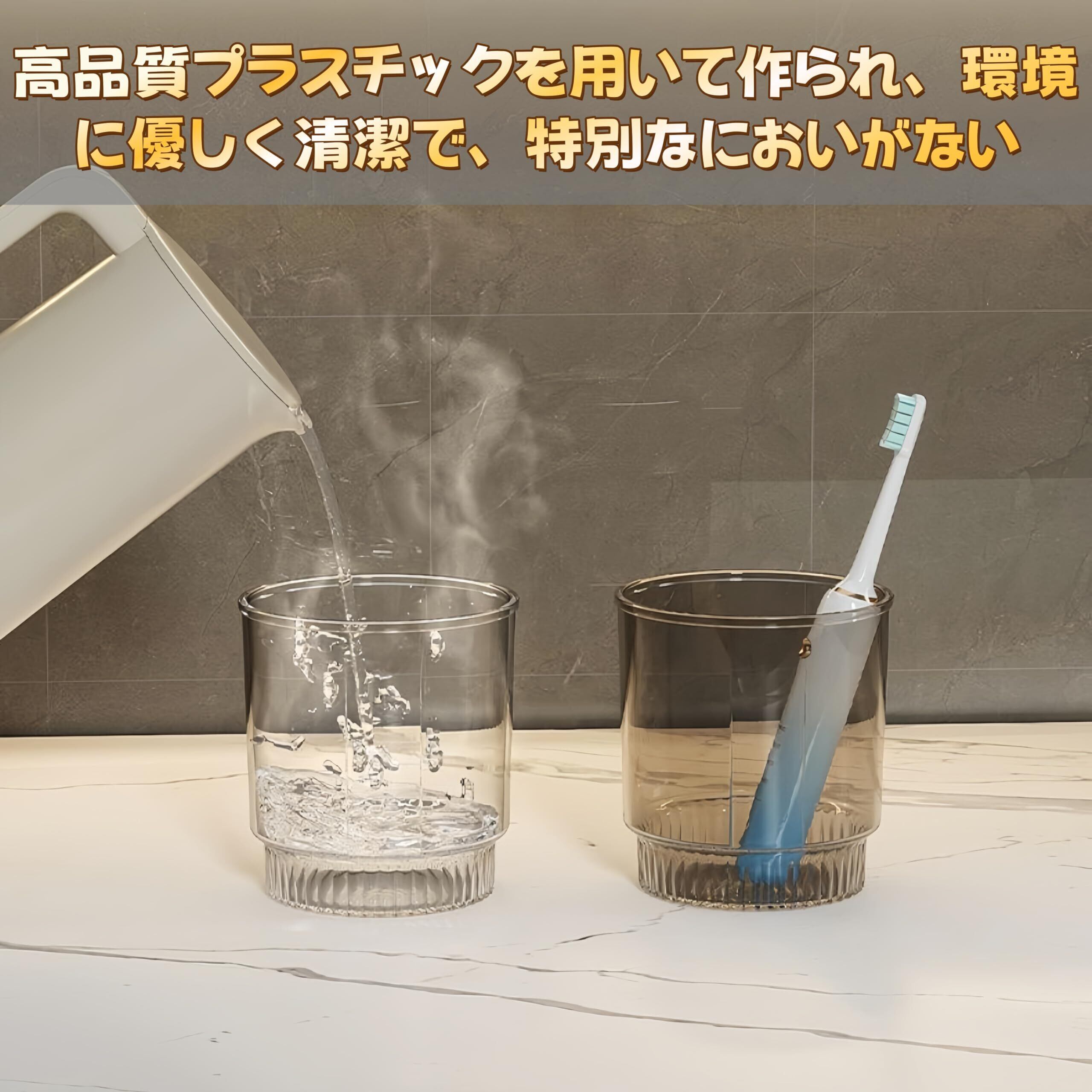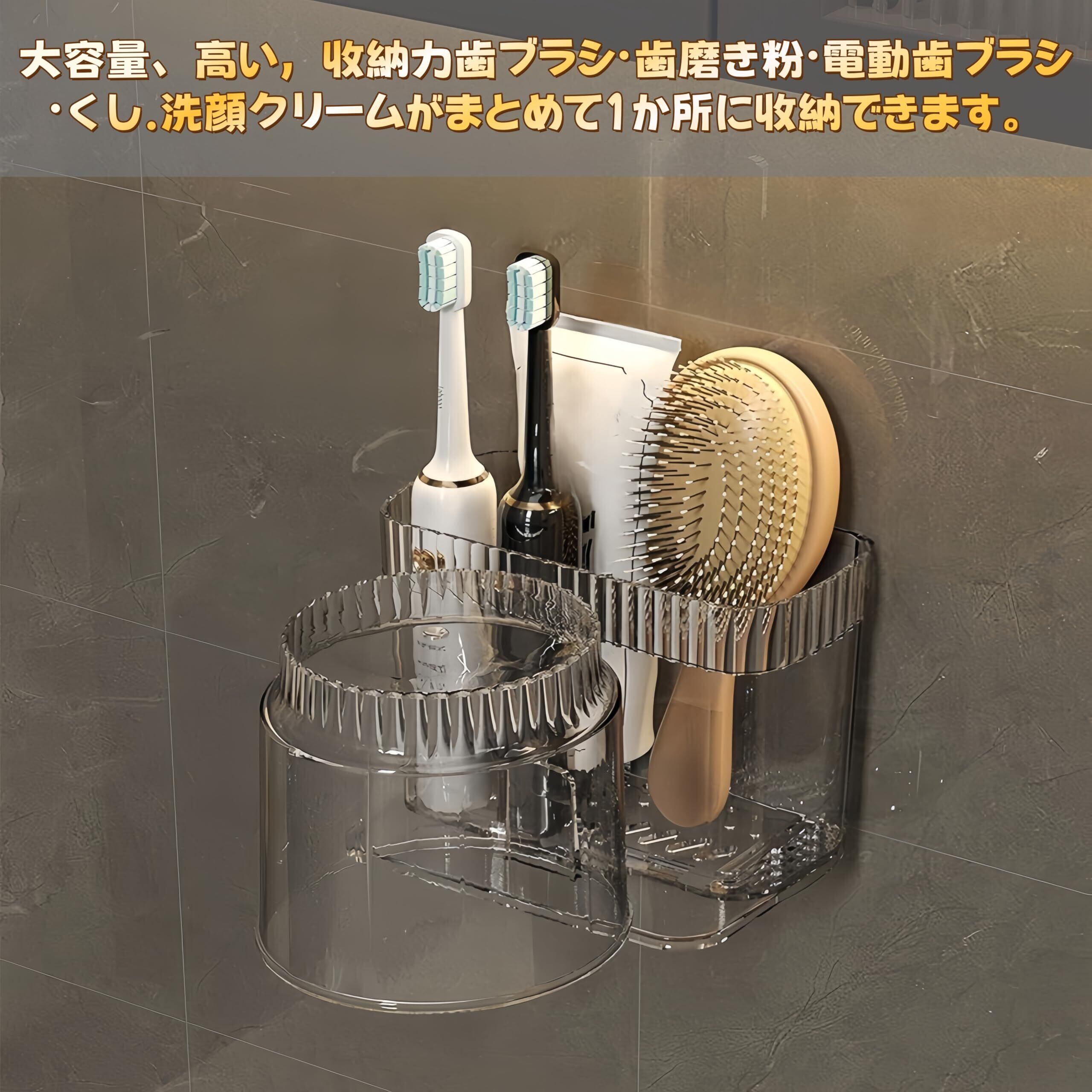 Jiawei歯ブラシホルダー うがいコップ 歯ブラシスタンド コップスタンド 歯ブラシ立て 穴あけ不要 大容量収納 歯磨きコップ 洗面所 コップ 浮かせるコップ納 透明 軽量 デザイン