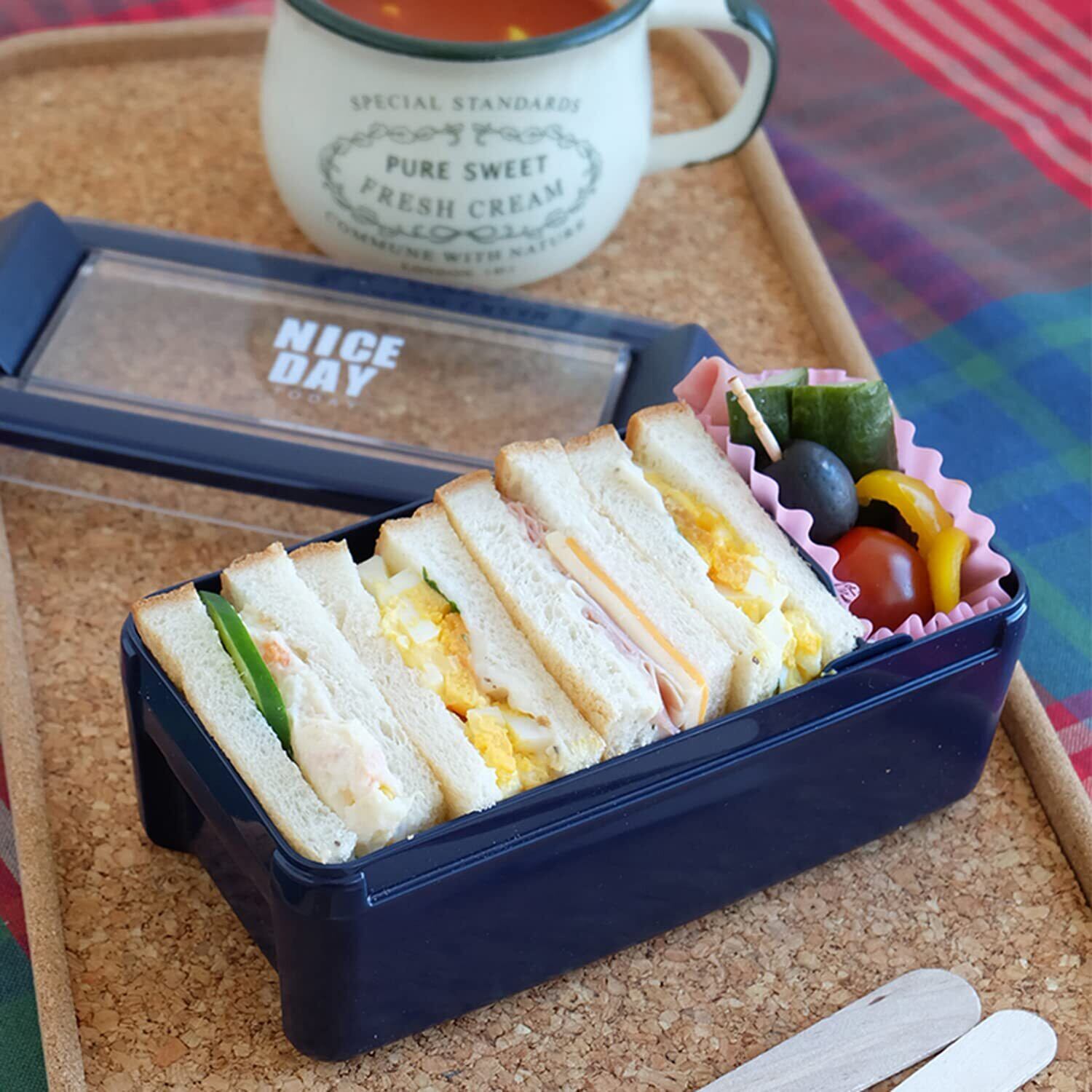 お手入れ簡単な弁当箱1段520ml。シリコンパッキンに比べて、汚れがしみこみにくいエラストマーを使用したパッキンをフタと一体化。食材を押しつぶしにくいフタ形状。食パンの高さを意識したサイズ設計。年齢・性別問わず使え、スポーツシーンや学校・オフィスでも使いやすいベーシックなカラーデザイン。食洗機OK。電子レンジ(本体・中仕切)OK。本体、中仕切りは防汚加工、雑菌の繁殖を抑える抗菌加工がされています。