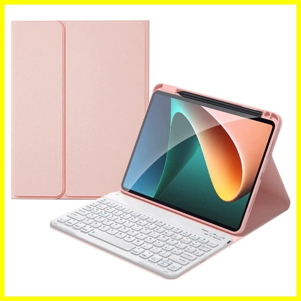 iPad 6 iPad 5 iPad Air2 キーボード ケース Apple Pencil 上部ペン収納 くぼみキー 入力しやすい アイパッド 第6/5世代 9.7インチ キーボード付き カバー 分離式 マグネット 薄型 ワイヤレス キーボード (ピンク+白)