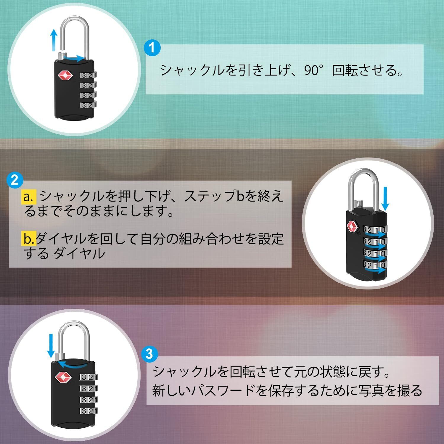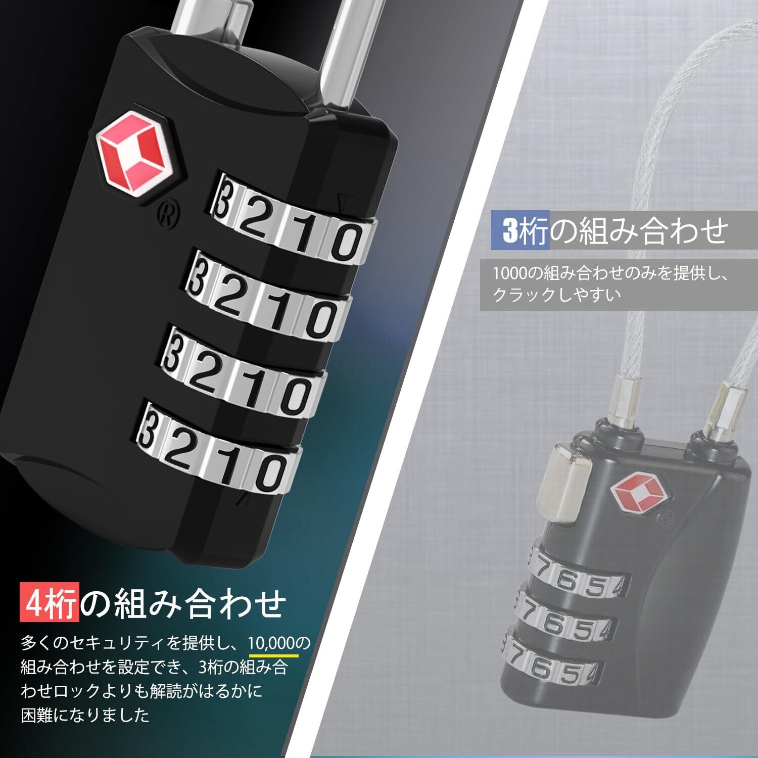 【4桁コンビネーションロック】 最新バージョンとセキュリティアップデート!4桁の数字は10,000通りの組み合わせが可能です。そのため、鍵のセキュリティを心配する必要はありません