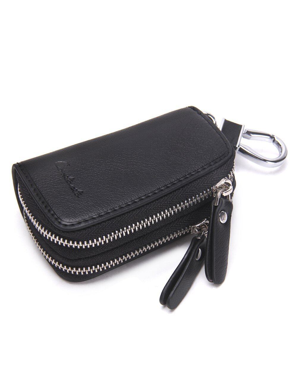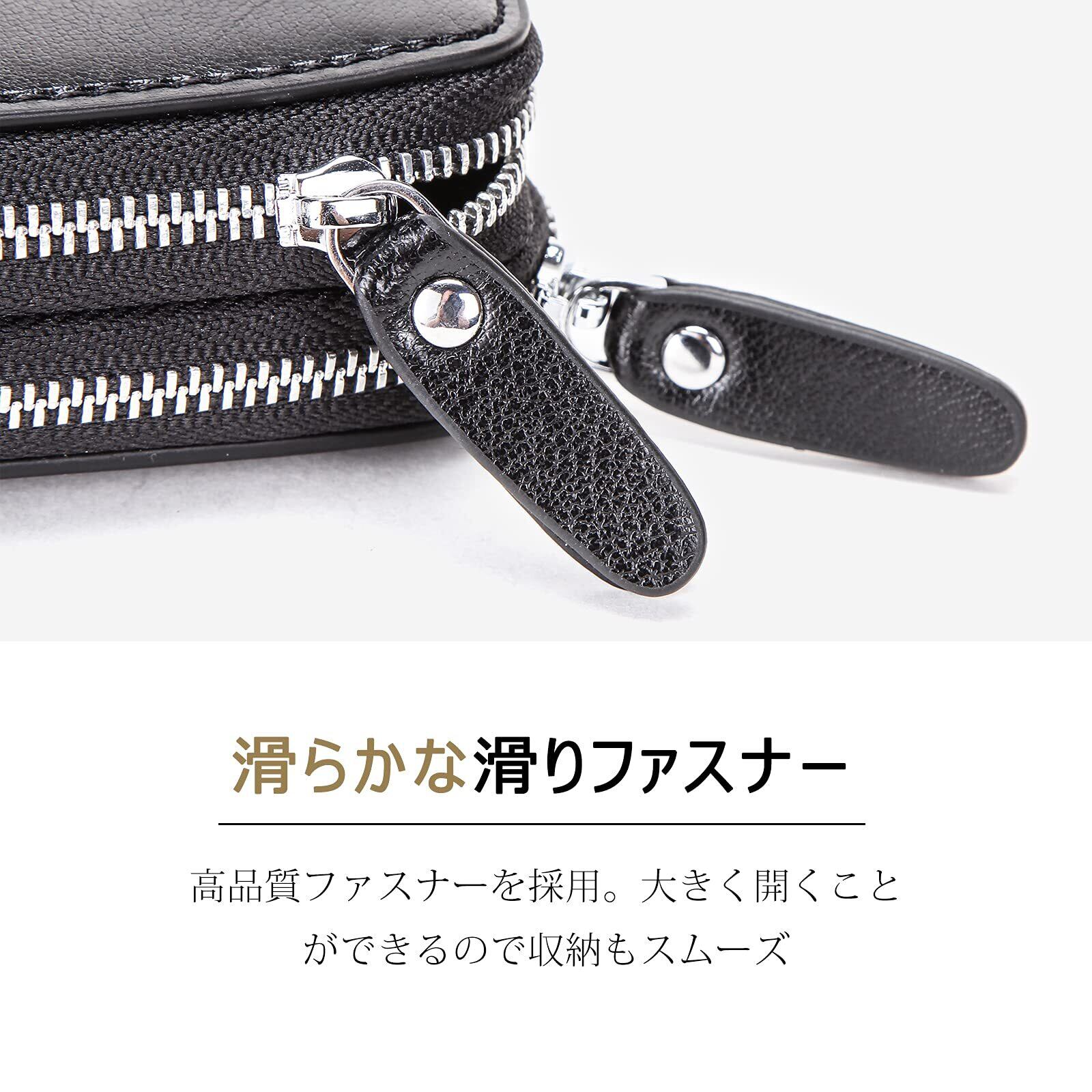 [HIRAM] キーケース メンズ 本革 スマートキーケース ダブルファスナー カラビナ付き DIY無料