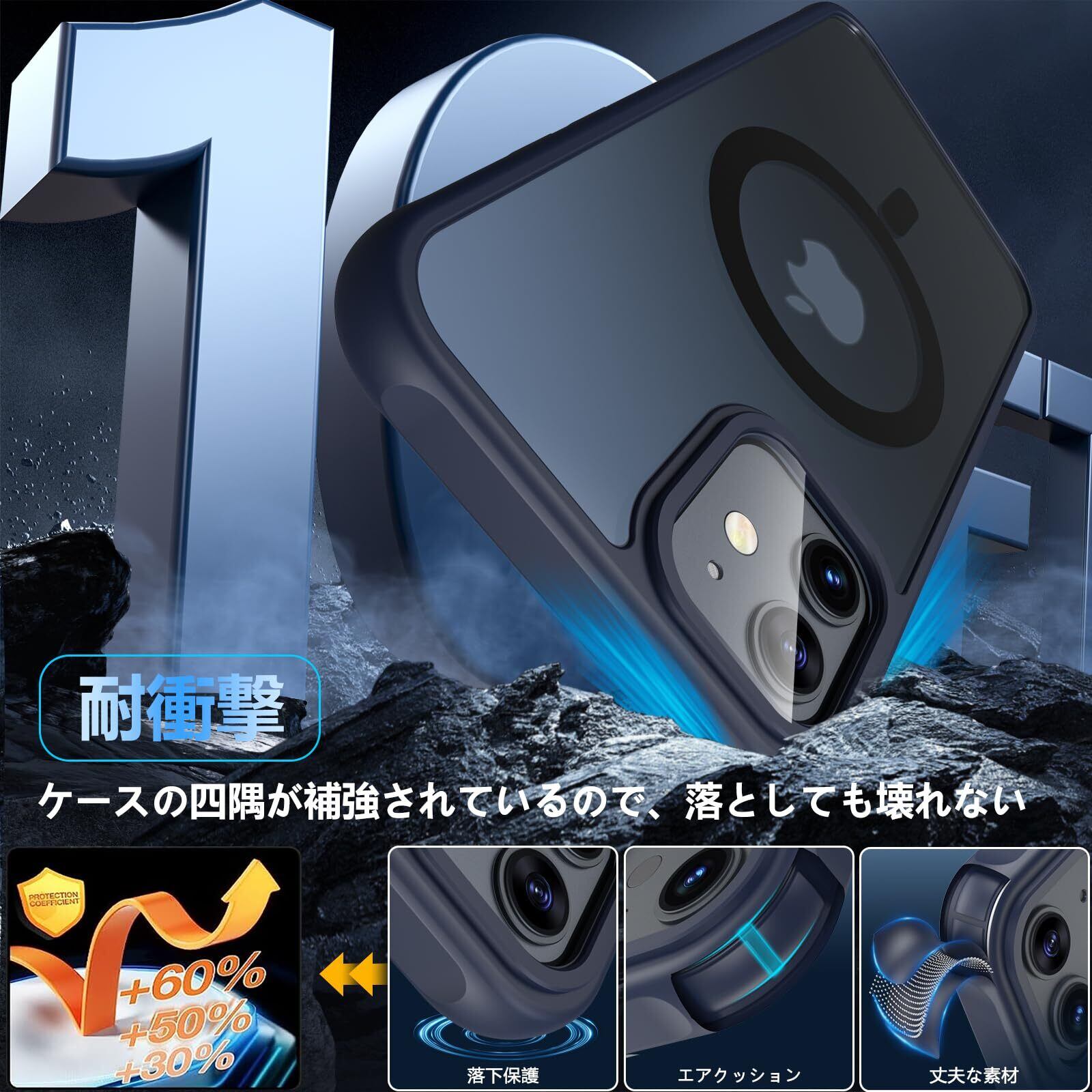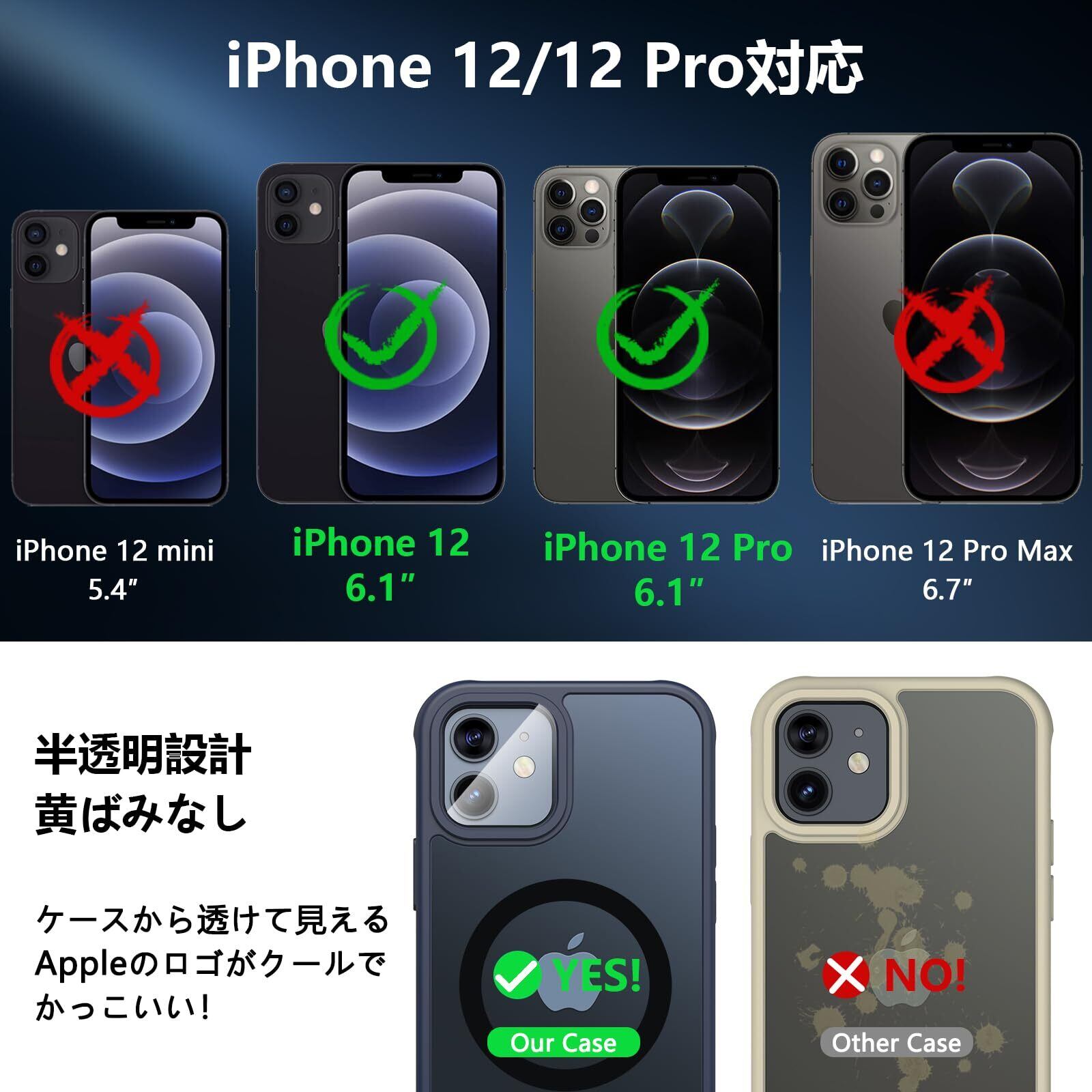 【抜群な耐衝撃性・画面保護】 アイフォン12/12Proの液晶画面とカメラ部分よりもフチやや高く設計されているため、机などの平面に置いても傷付く心配はありません。耐摩耗性に優れた頑丈なPC背面と柔軟なTPUフレームを採用し、四隅にエアクッションがあることで落下などの衝撃を抑えられます。