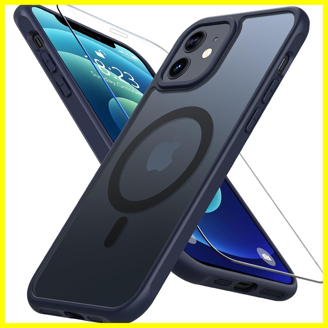 [Hensinple iPhone 12/12 Pro ケース 【MagSafe対応・ガラスフィルム付き】 アイフォン12 カバー 半透明 黄ばみなし 耐衝撃 滑り止め 指紋防止 マグセーフ対応 ストラップホール付き iPhone 12/12 Pro スマホケース 6.1インチ用 ブルー]