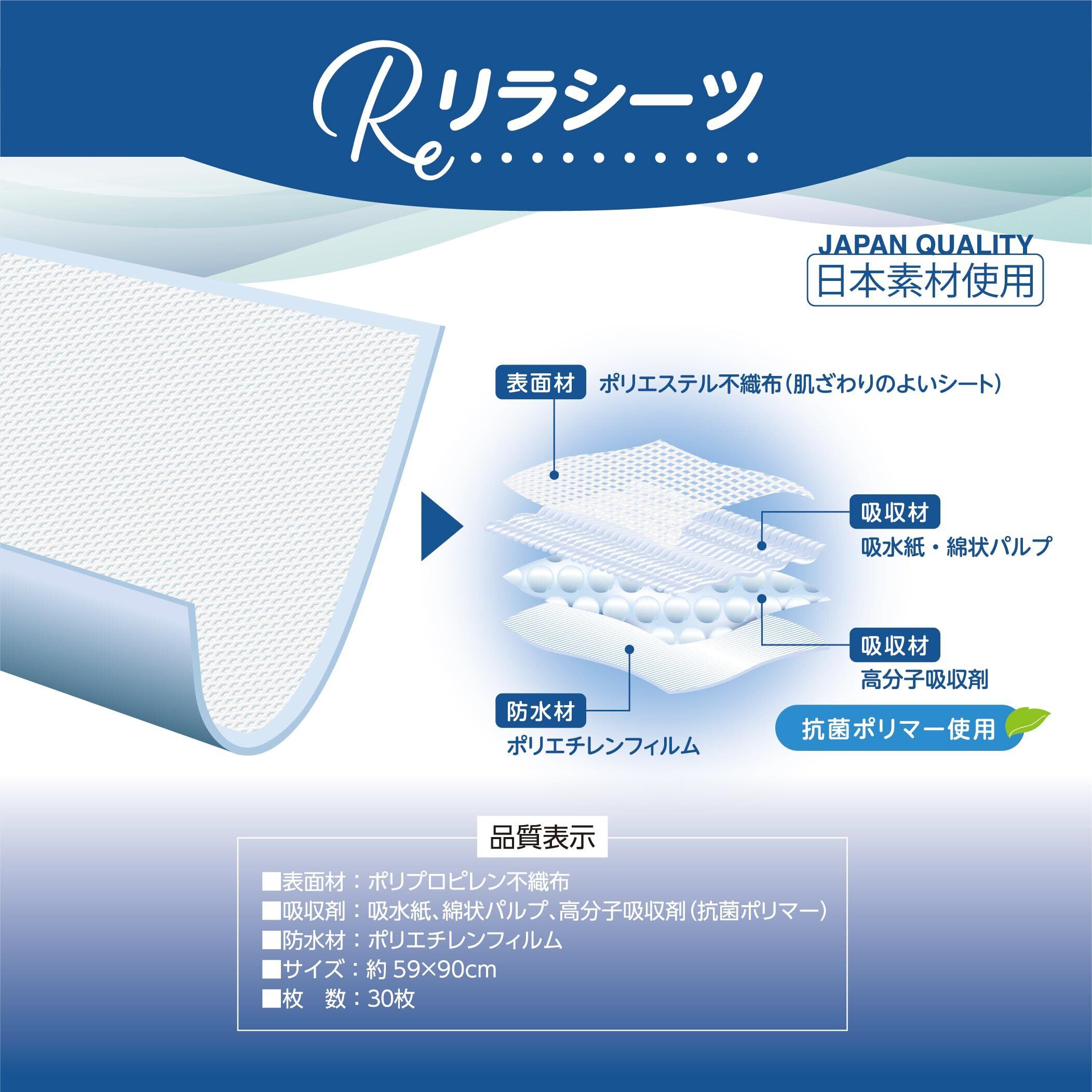 リラシーツ 防水シーツ 使い捨て 吸水シート 30枚 60x90cm 防水シート 介護用 防水シーツ 抗菌ポリマー ふとん安心 ベッド 洗浄 大判 ワイド サイズ 30枚