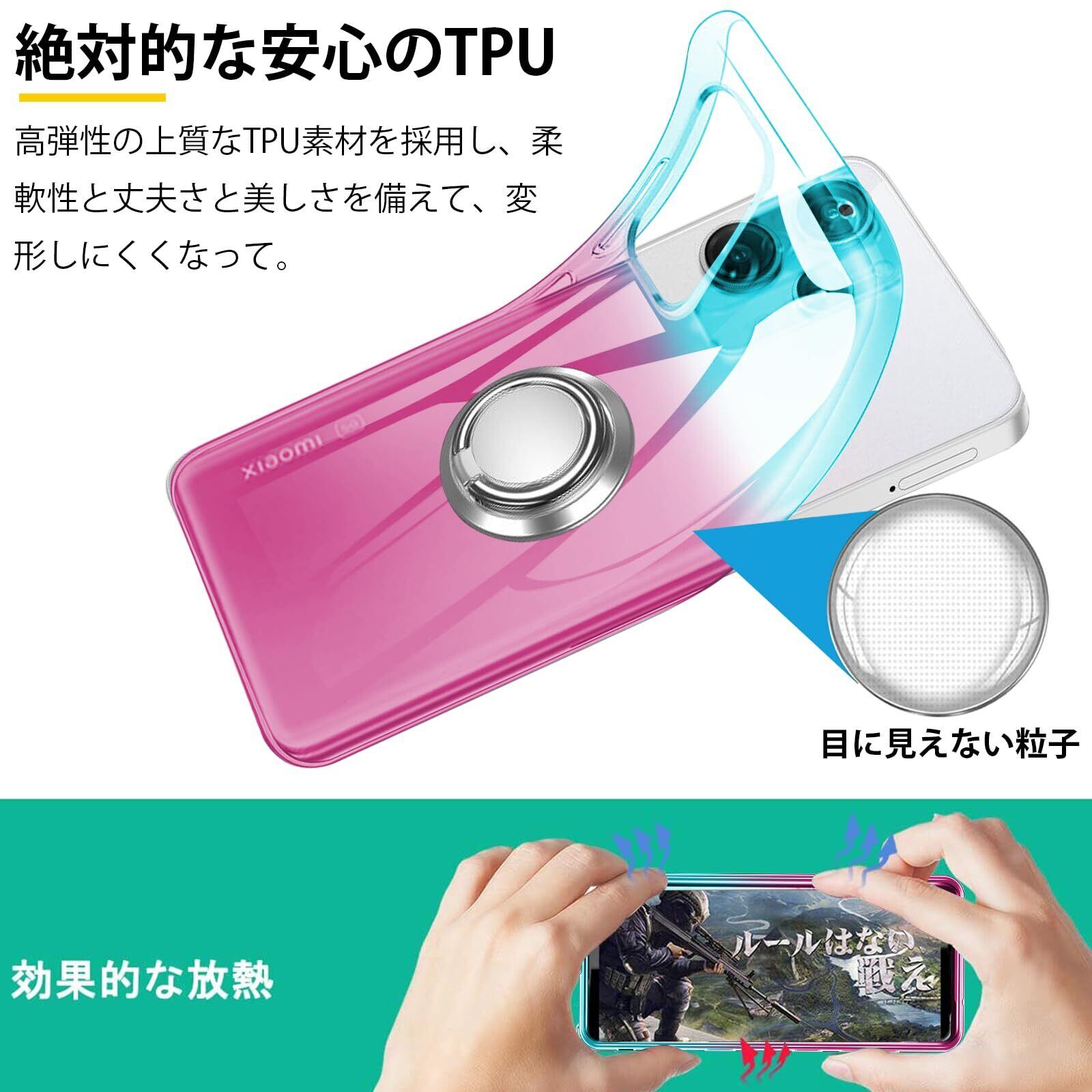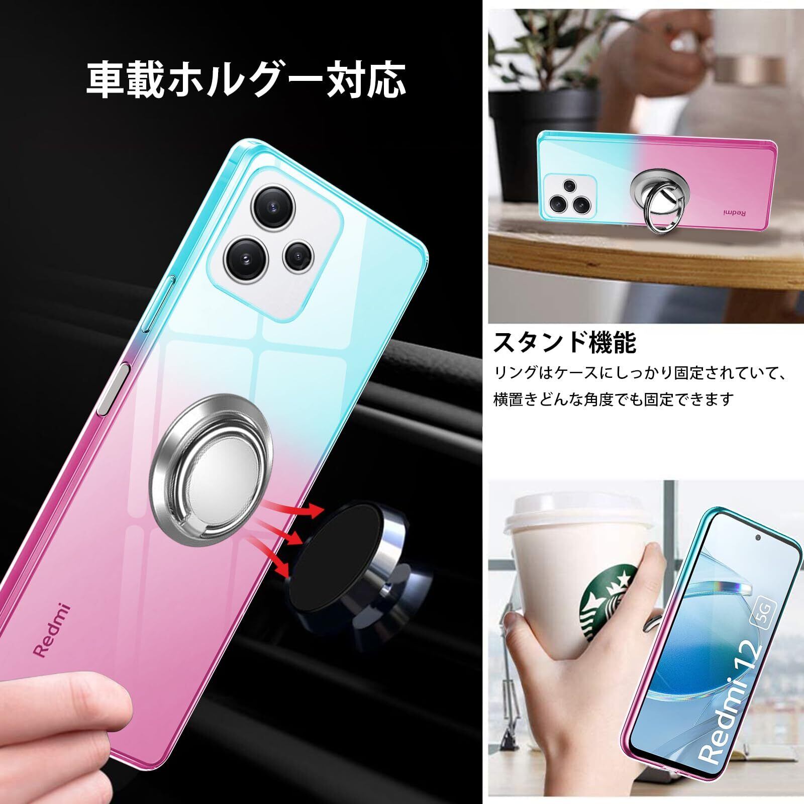 Redmi 12 5G ケース リング TPU 薄型 軽量 Redmi 12 5G カバー グラデーション色 ケース 耐衝撃 指紋防止 車載ホルダー対応 防塵 一体型 人気 携帯カバー 全面保護カバー 绿の粉