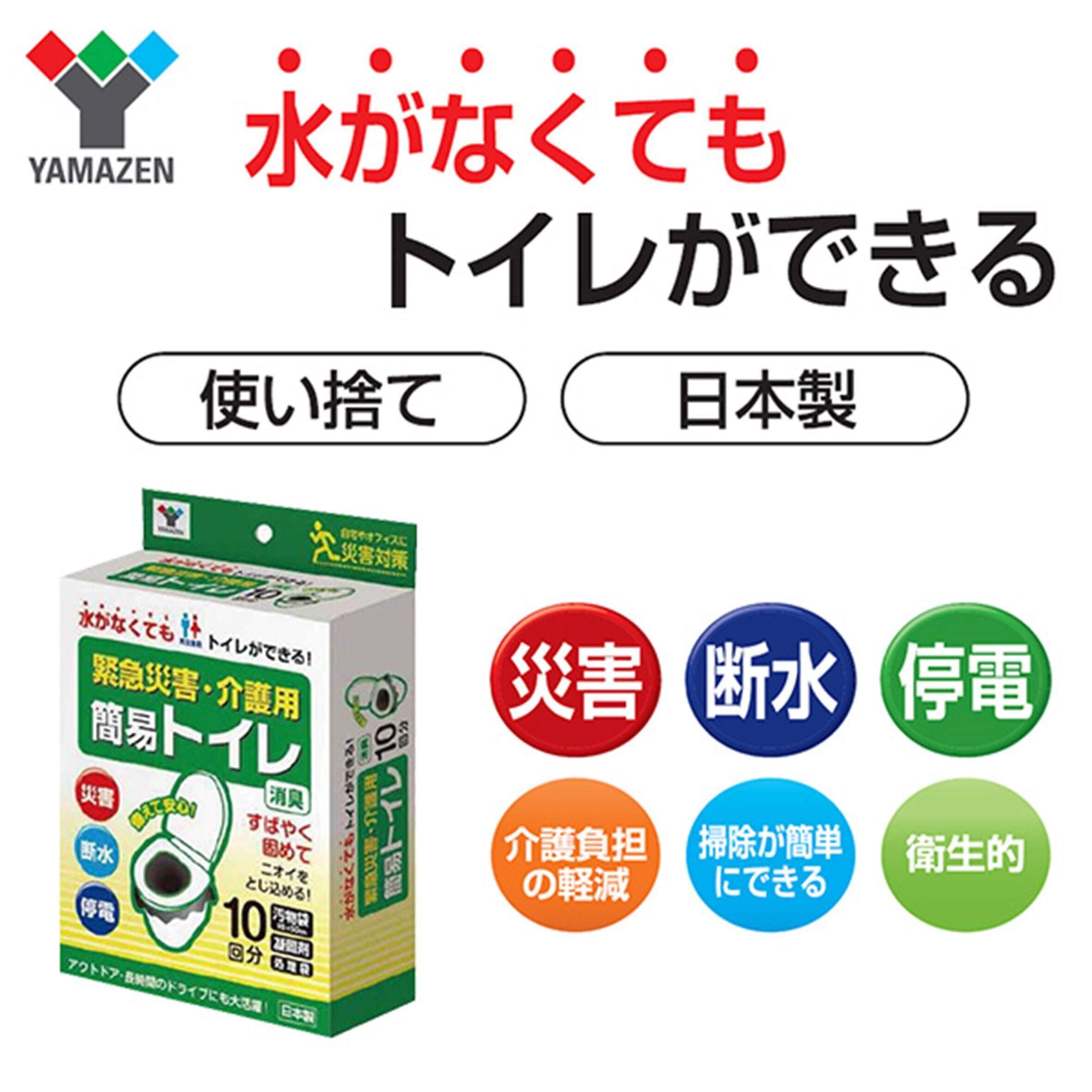山善(YAMAZEN) 簡易トイレ 【日本製】 10回分 (凝固剤/汚物袋/処理袋) 携帯トイレ 災害用トイレ 防災 断水 介護 非常用 簡易トイレ用ウエルポリマー12g YKT-10