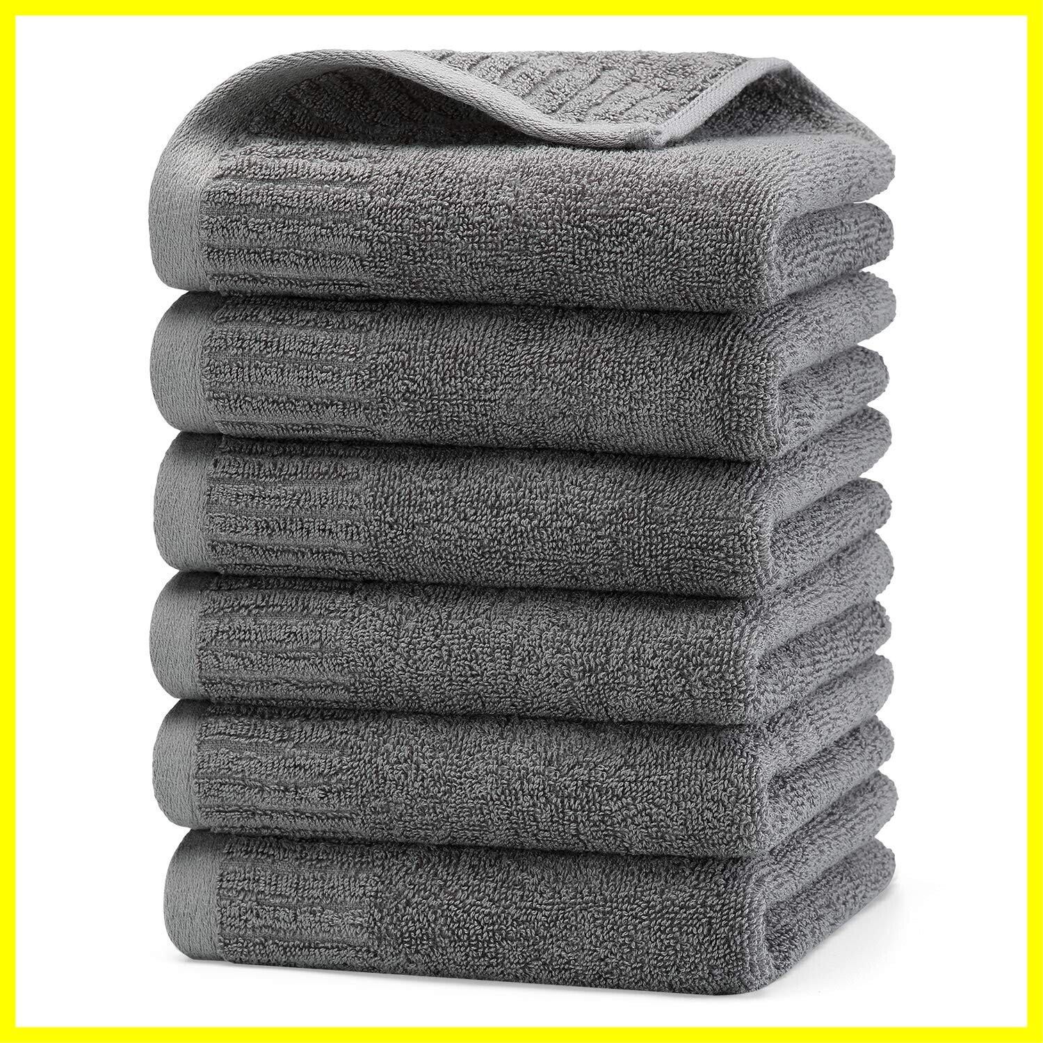 フェイスタオル グレー 無地 タオル おしゃれ 北欧風 綿100% 6枚セット 吸水速乾 35*70cm 厚手 大判 抗菌防臭 家庭用、ホテル、業務用、スポーツなどにも最適 四季通用 グレー6枚