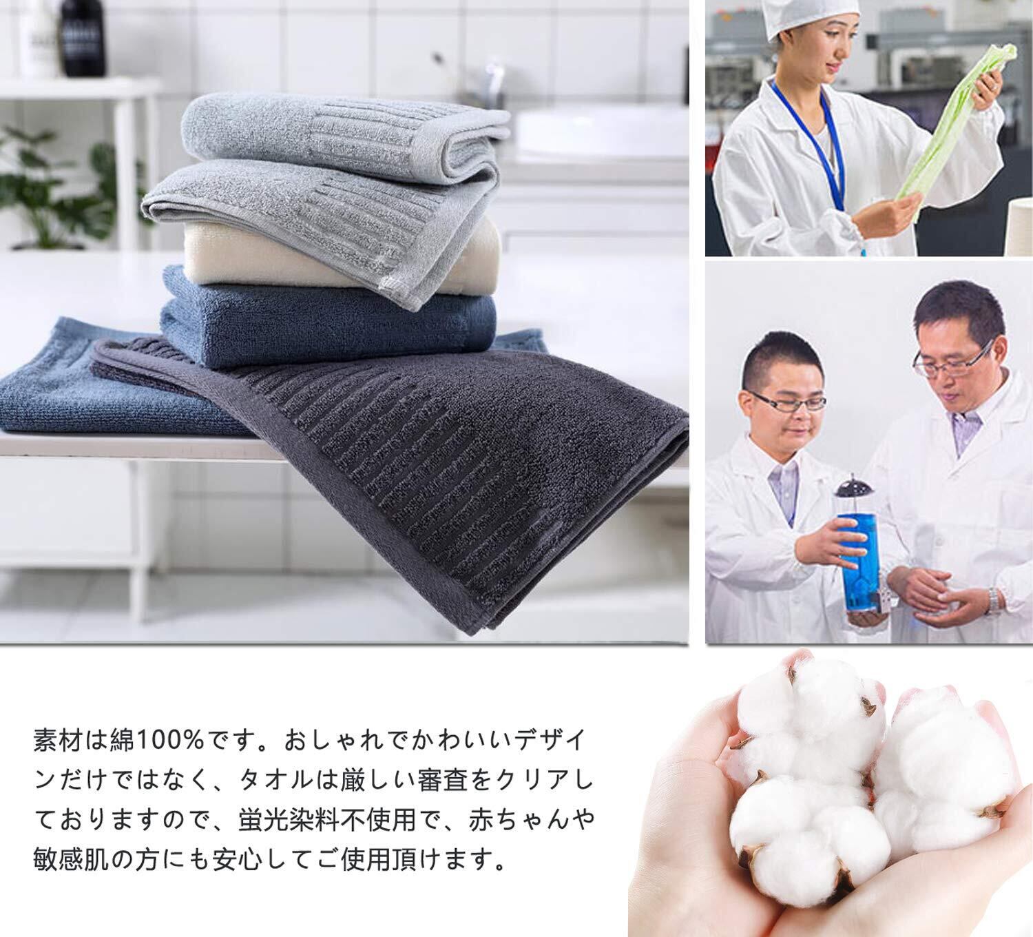 【厳選された綿100%の素材】素材は綿100%です。染色堅牢度は4級に達し、色移りや毛羽落ちがなく、何回洗濯しても変形しなくて、超長持ちタイプです。おしゃれでかわいいデザインだけではなく、タオルは厳しい審査をクリアしておりますので、においがありません、蛍光染料不使用で、赤ちゃんや敏感肌の方にも安心してご使用頂けます。