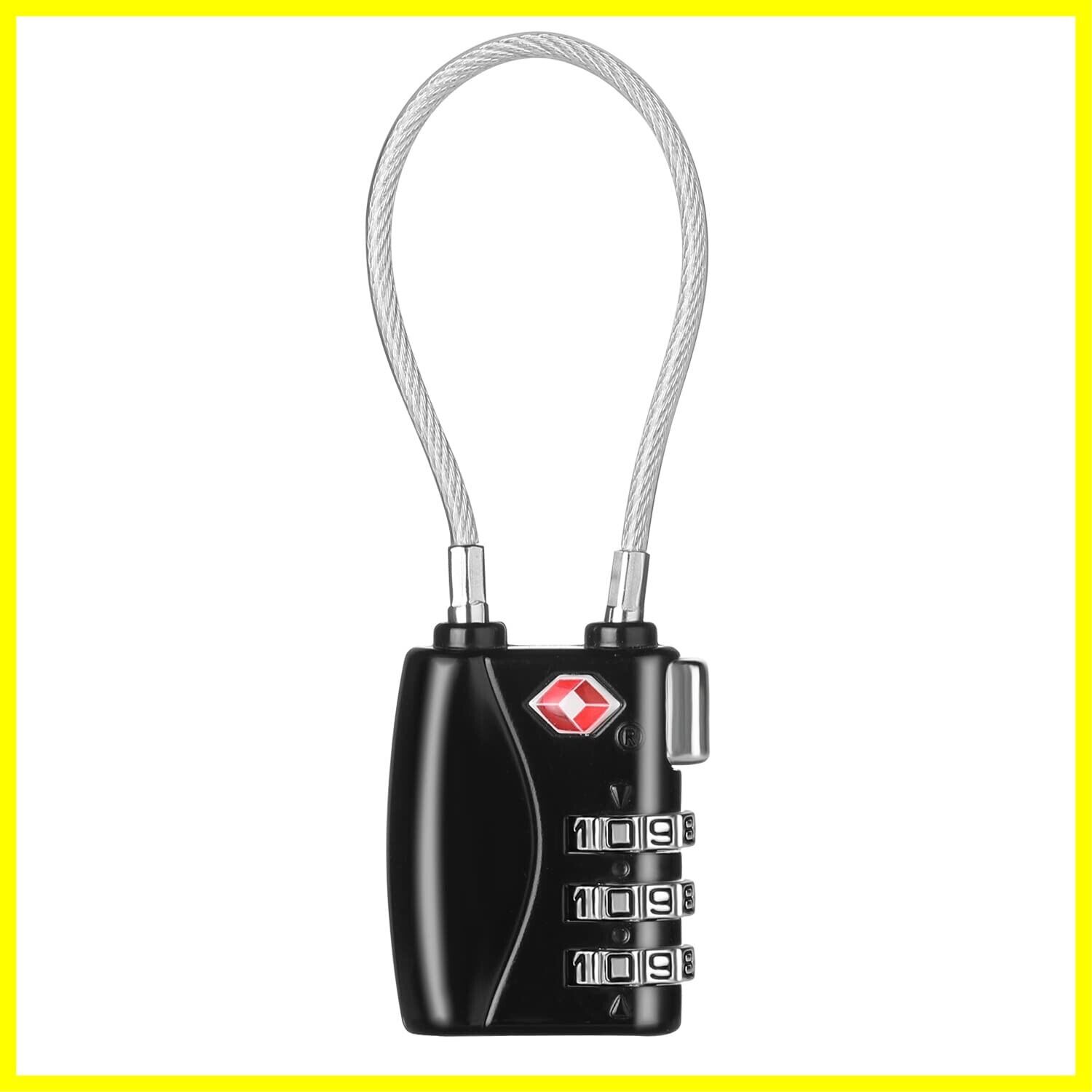 ZHEGE TSAロック 南京錠 ワイヤータイプ 旅行用 安心 防犯グッズ 3桁ダイヤル式ロック(ブラック)