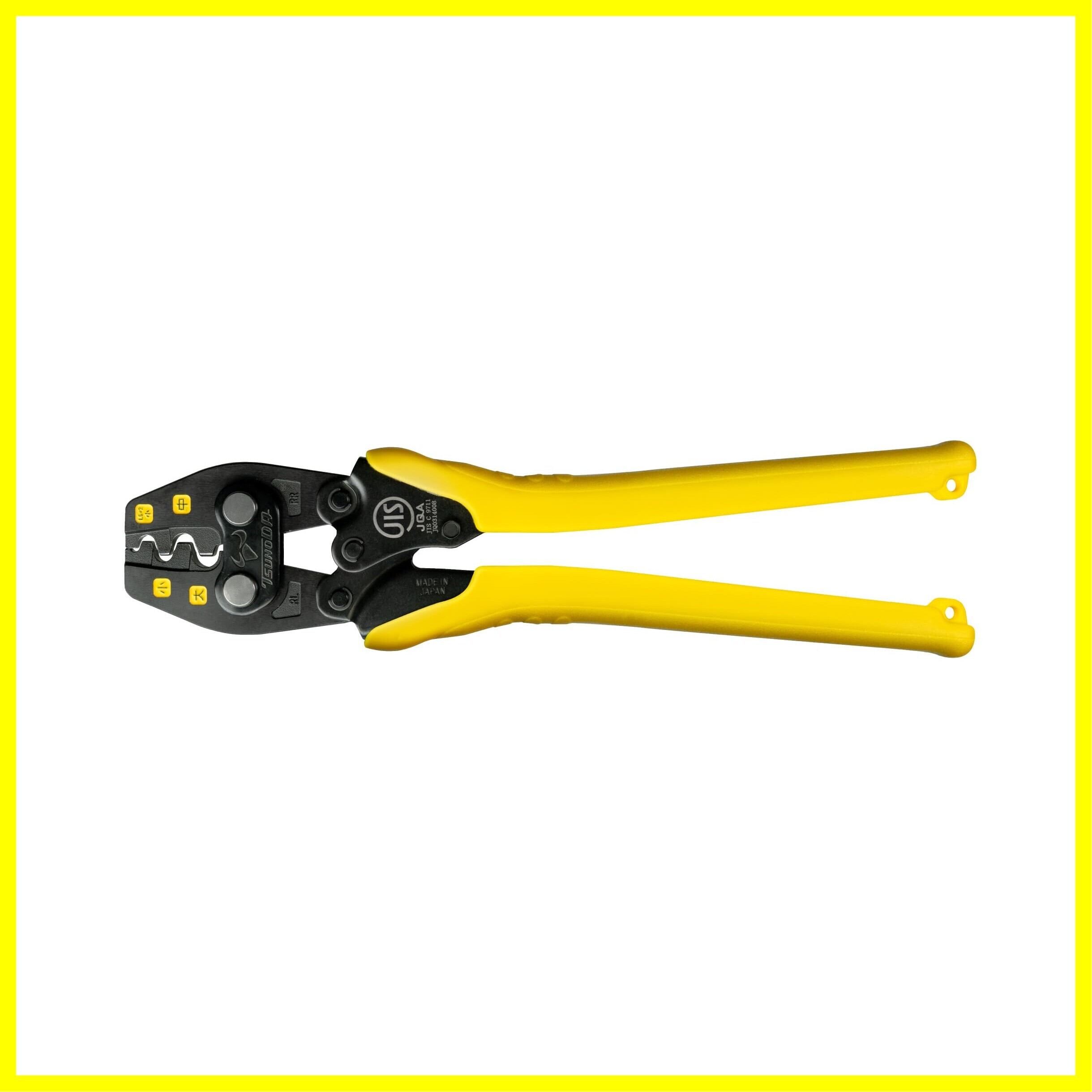 JIS C 9711認証取得品。リングスリーブ用(1.6×2・小・中・大)。電気工事士技能試験必携工具。二重テコによる倍力効果で圧着時の負担を軽減。構造力学計算による業界NO.1の軽い圧着を実現。