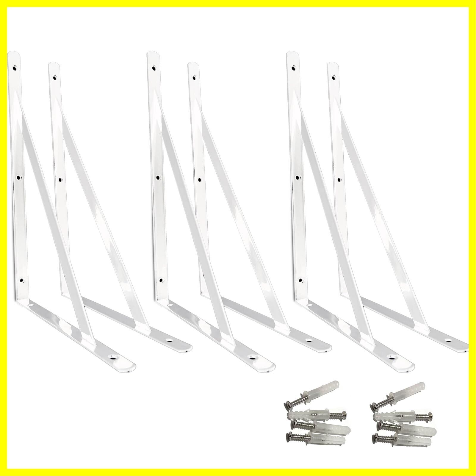 L字に補強柱を使用しているため、棚の強度が高まり、ディスプレイ棚の制作に最適です。サイズは300mm×190mm(厚さ2mm)で、6個セットとなっています。※詳細は画像にてご確認ください。収納やディスプレイ棚を設置できるL字金具のセットです。