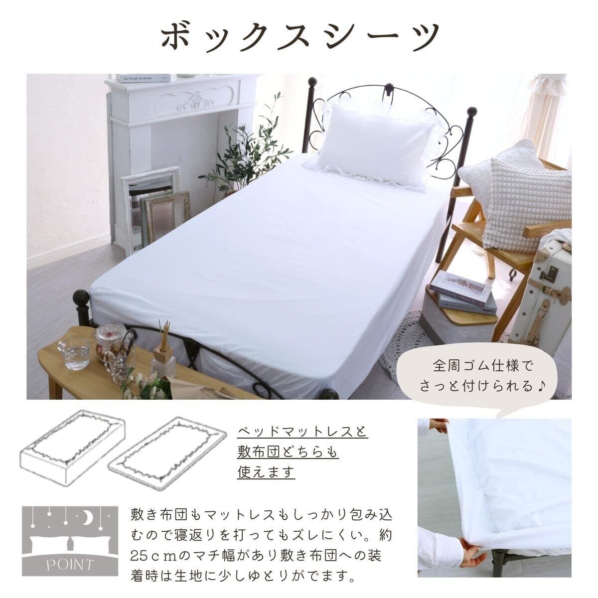 【シングル】ピローケース(合わせ式) 43×63cm / 掛け布団カバー(ズレ防止ひも6ヶ所付き)150×210cm / ボックスシーツ 100×200×25cm