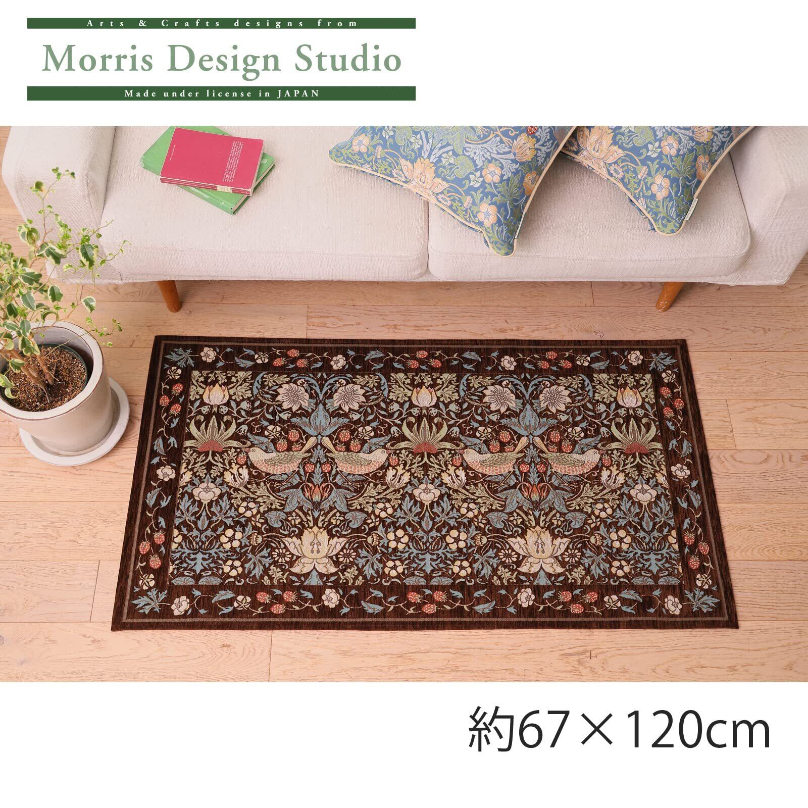 川島織物セルコン Morris Design Studio モリスデザインスタジオ 玄関マット ラグ いちご泥棒 ブラウン 67×120cm FH1709