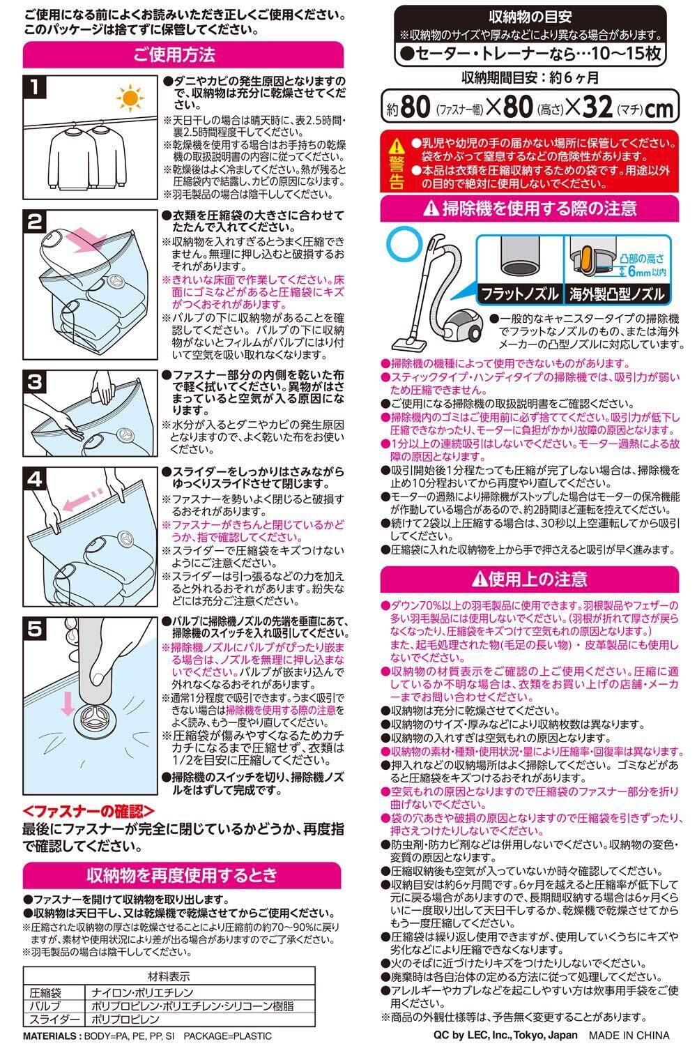 レック(LEC) Ba 衣類圧縮袋 マチ付き 2枚入 (自動ロック式) O-855