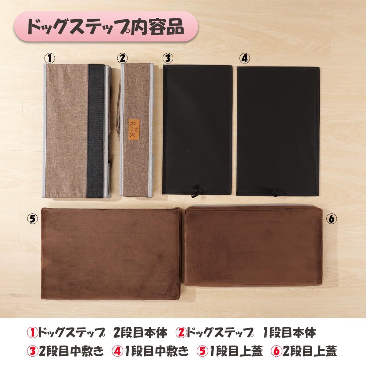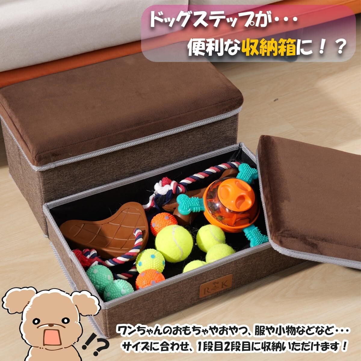 RK ペットステップ ドッグステップ ペット ステップ 階段 犬の階段 2段 タイプ 収納ボックス 組立 折りたたみ コンパクト 軽量 国内検品済 ブラウン