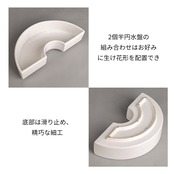 ✿仕様:小原流花道生け花用花器・半円形水盤。✿素材:プラスチック厚板(素材は生分解できます。)✿スタイル:ホワイト2個半円形水盤。✿サイズ:半円形水盤1個:28.5*15*6cm(長さ*幅*高さ)。✿パッケージに含まれるもの:水盤*2。