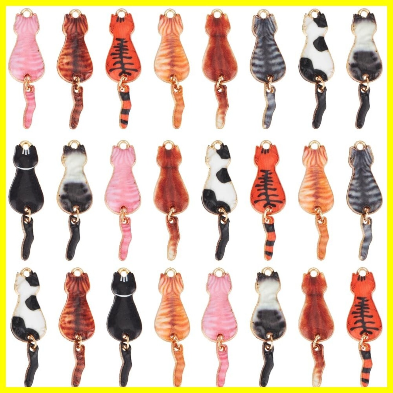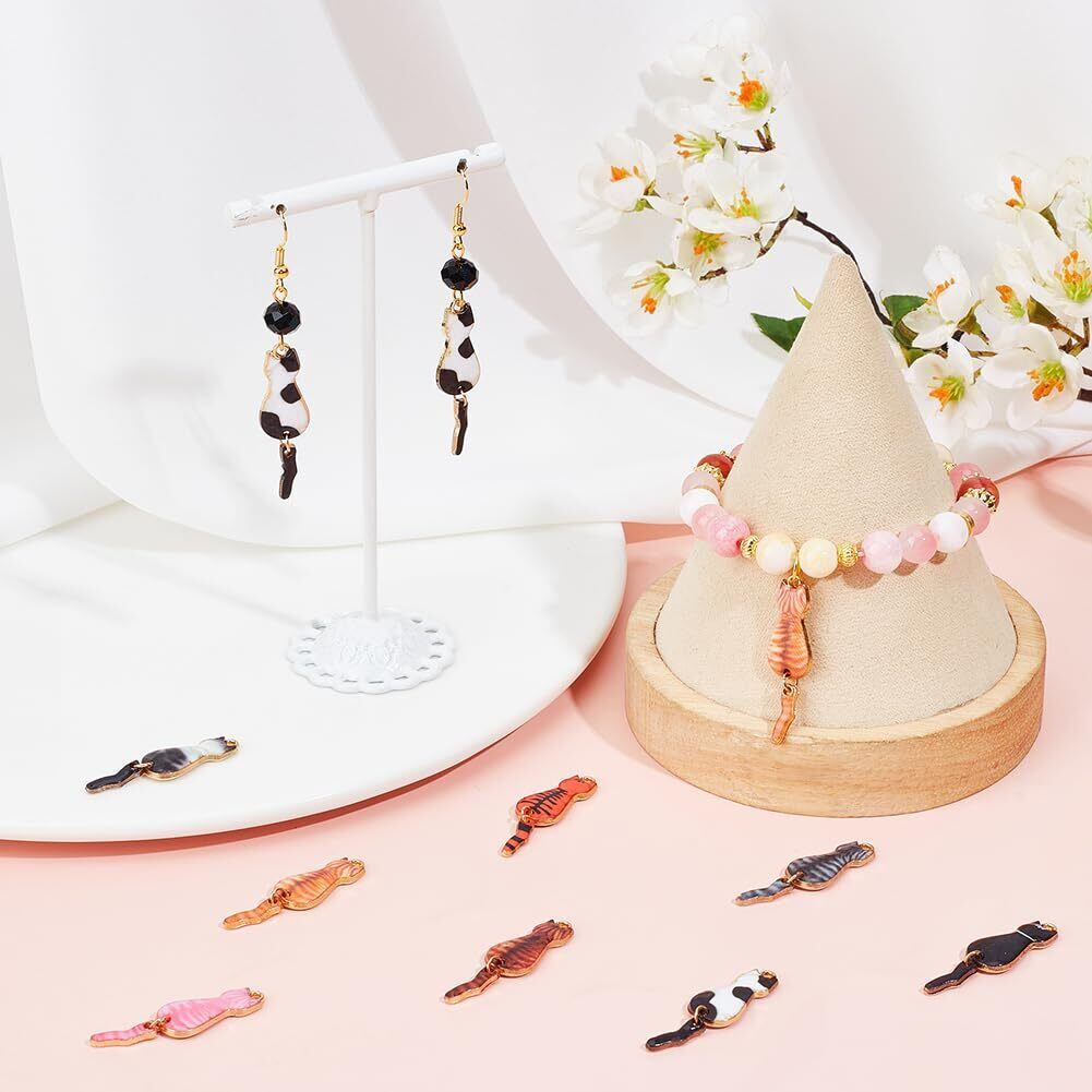 エナメル素材:ミックスカラーの猫チャームは光沢のある高品質の合金素材で作られています。色あせにくい, 耐久性と防錆性, 壊れたり変形したりしにくい.