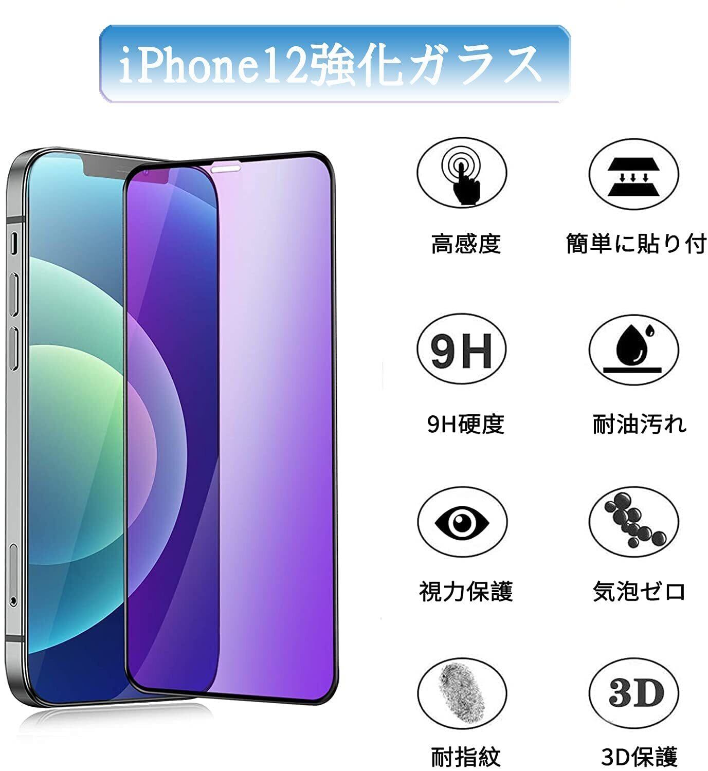 【あなたの大切なiPhoneを守る「iPhone12 ガラスフィルム」で、スマホライフをもっと快適に!】このフィルムは、iPhone12およびiPhone12pro専用デザインで、全面をしっかり保護します。ブルーライトカット機能が搭載されており、目の負担を軽減し、快適にスクリーンを利用することが可能です。