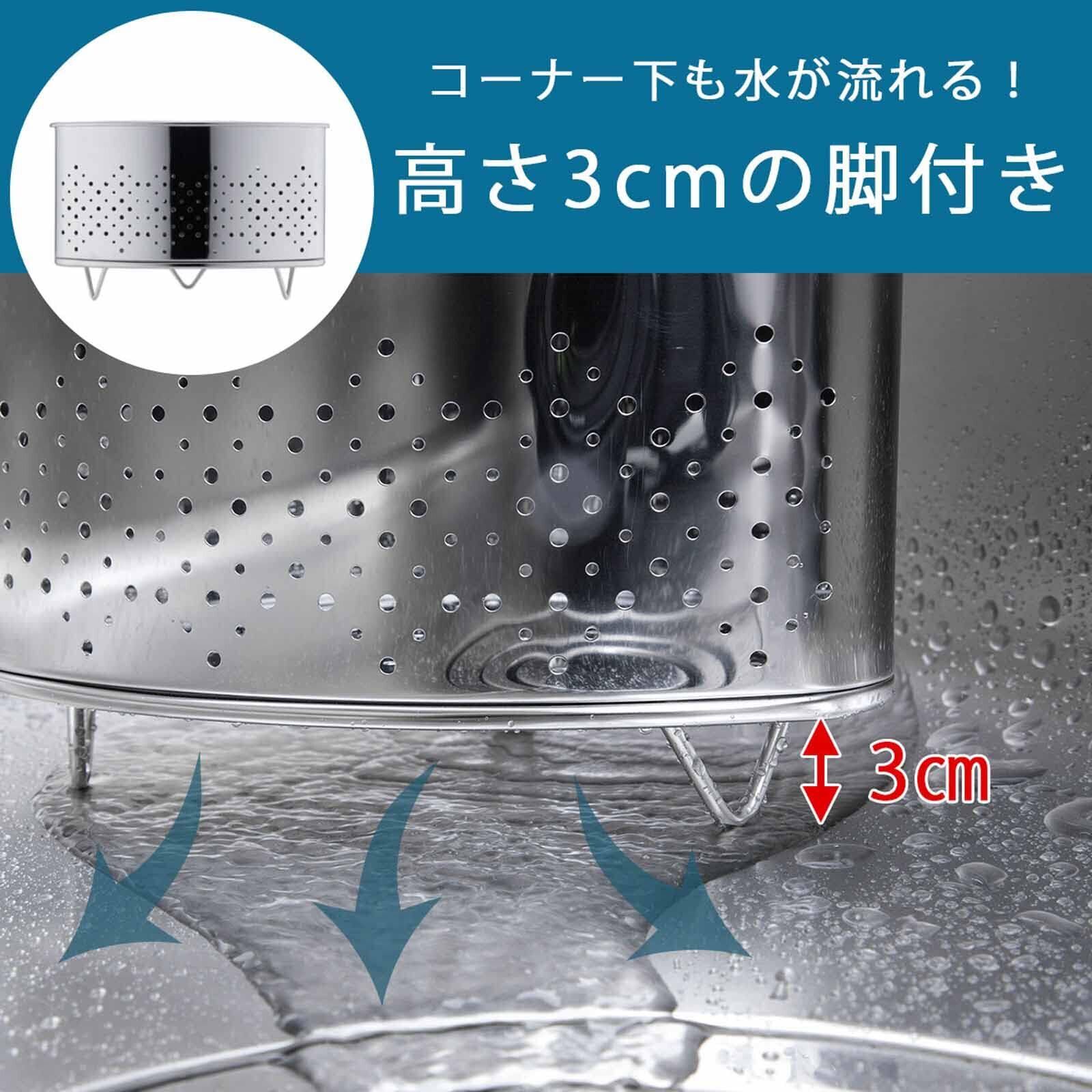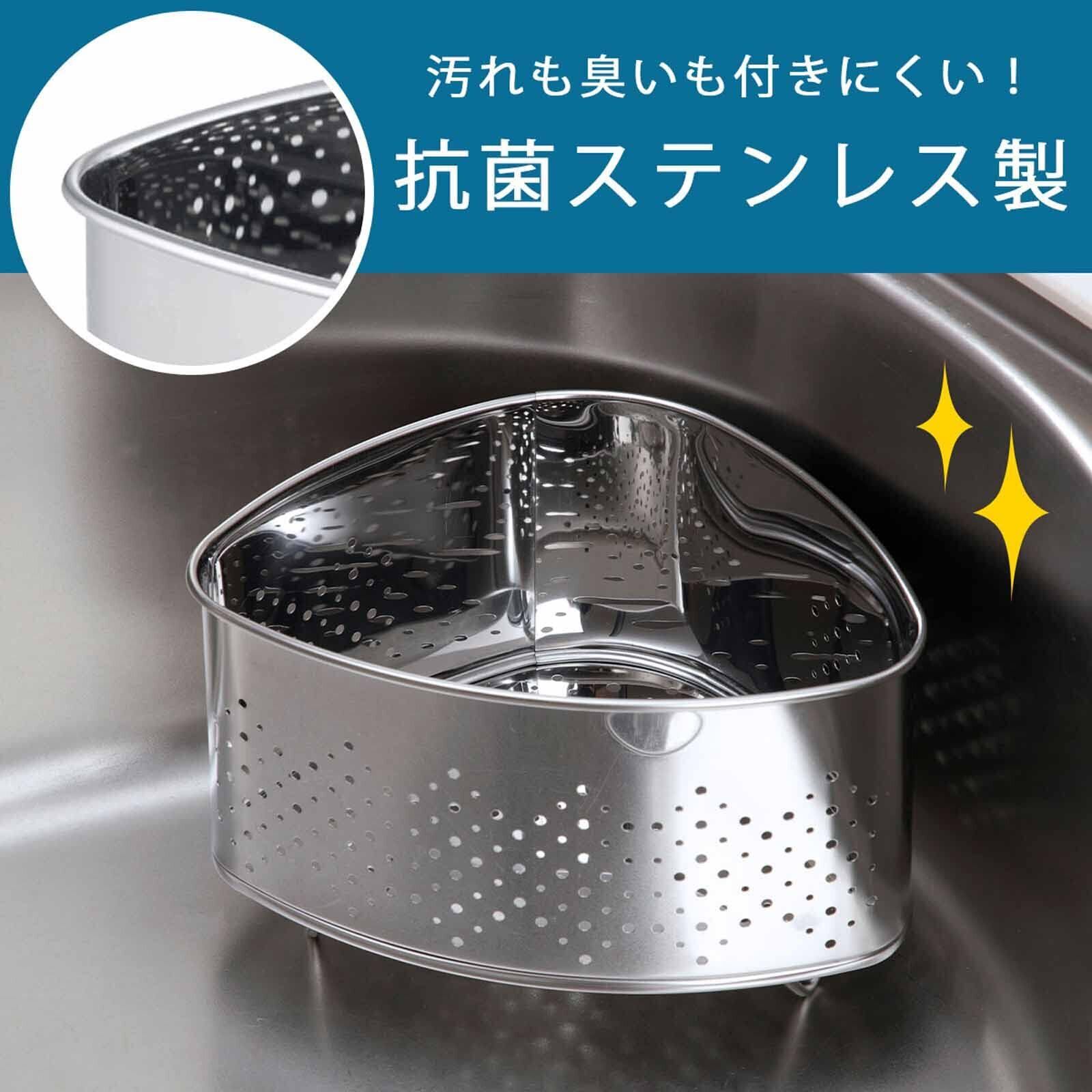 下村企販 通気性のいい 三角コーナー 【日本製】 抗菌 水はけが良い 生ごみ入れ シンク用 においがこもりにくい 脚付き シルバー ステンレス 燕三条 41778