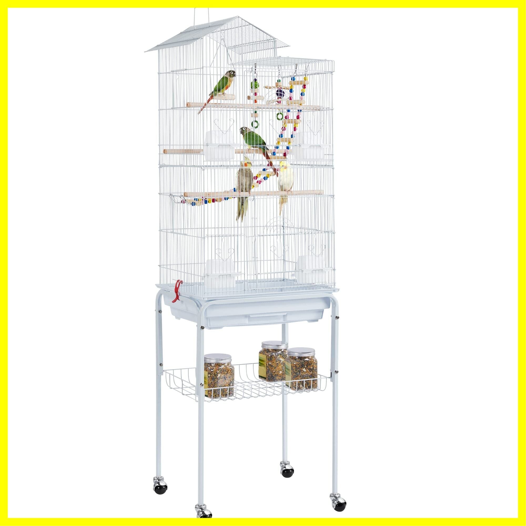 Yaheetech 鳥かご 鳥ケージ スタンドあり 46x35.5x158.5cm 大型 高強度 豪華 大きい 鳥小屋 ブランコあり フルハウス ペット用品 おもちゃ セキセイインコ インコ オウムケージ オカメ コガネメキシコ コザクラ マメルリハ ウロコ アキクサ ホワイト