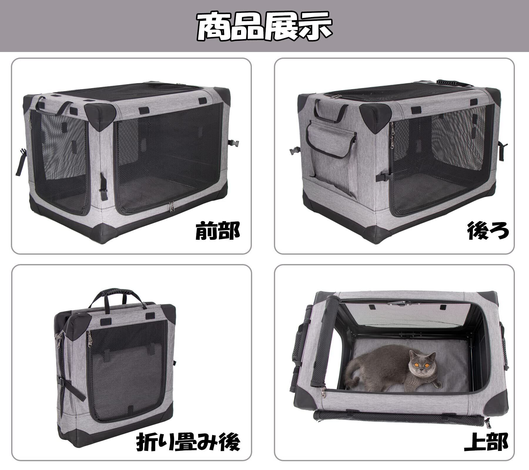 GPR ペット ソフトクレート ケージ ペットキャリー ペットハウス カバー取り外せる 4面メッシュ出入口 鉄フレーム 猫犬兼用 折りたたみ式 洗濯可能 (シルバグレー, M)