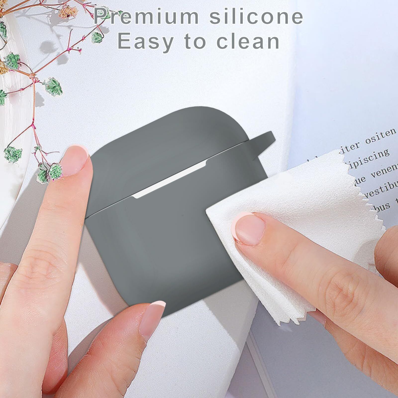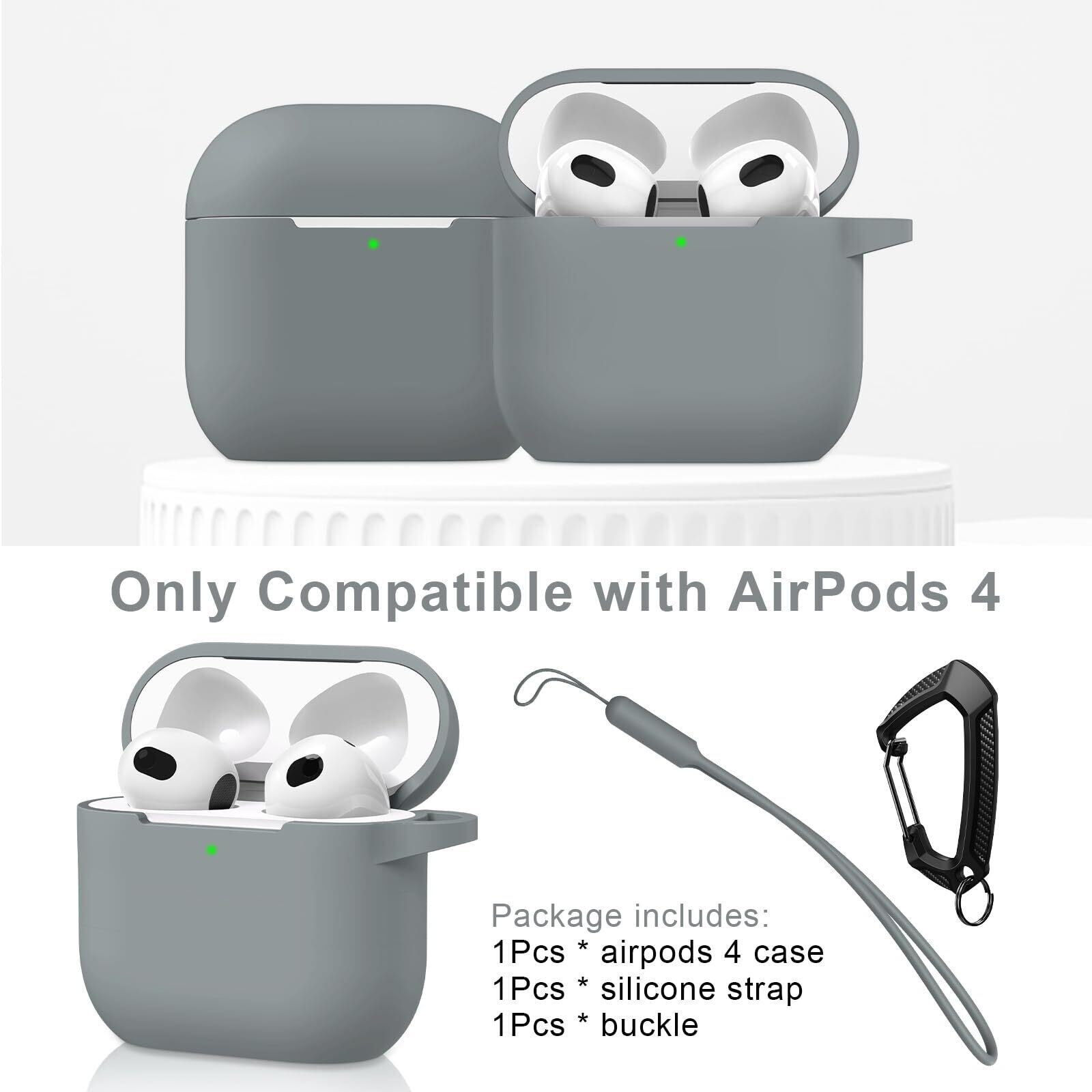 MILPROX AirPods 4用ケース シリコン ソフト 全面保護 耐衝撃 指紋防止 防震 防塵 落下/紛失防止 開閉式防塵カバー ワイヤレス充電対応 可視LEDライト カラビナ&シリコン製ストラップ付き エアーポッズ4(2024年発売 第4世代)グレー