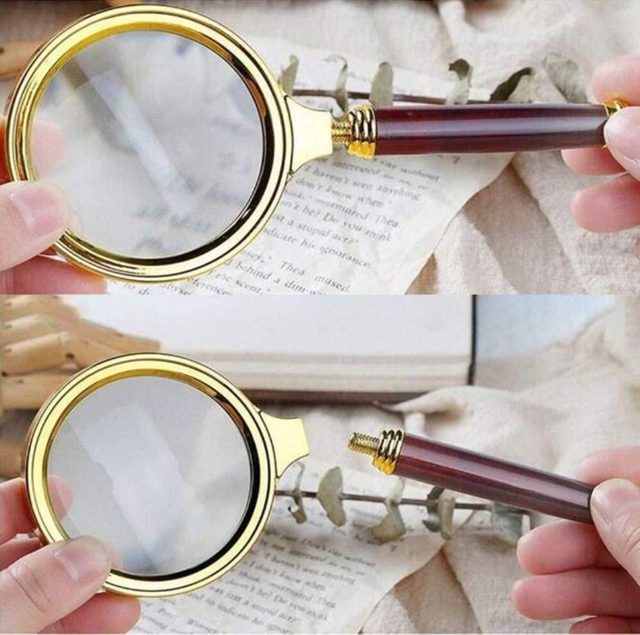 サムコス 手持ちルーペ 拡大鏡 5-10倍拡大 直径80mm 手持ち虫眼鏡 携帯便利 地図 雑誌 新聞 読書用 子ども、高齢者及び専門家使用可能 木製ハンドル ルーぺ 拡大鏡
