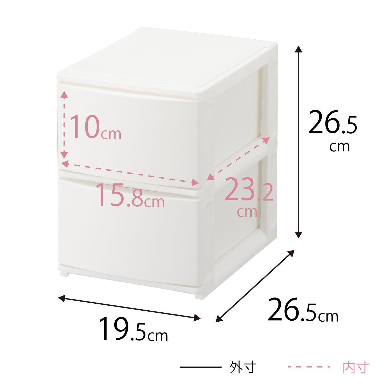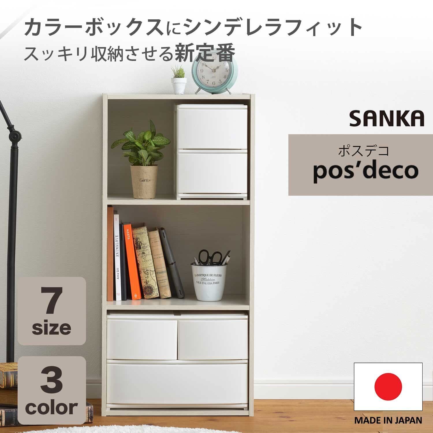 サンカ ポスデコ カラーボックスにピッタリフィット 引き出し収納ボックス ハーフ 深2段 ホワイト ずれを防ぐラバーストッパー 重ねて使える ロック機構 日本製 収納ケース 小物 衣装 (幅19.5x奥行26.5x高さ26.5cm) NpdA5-f2WH