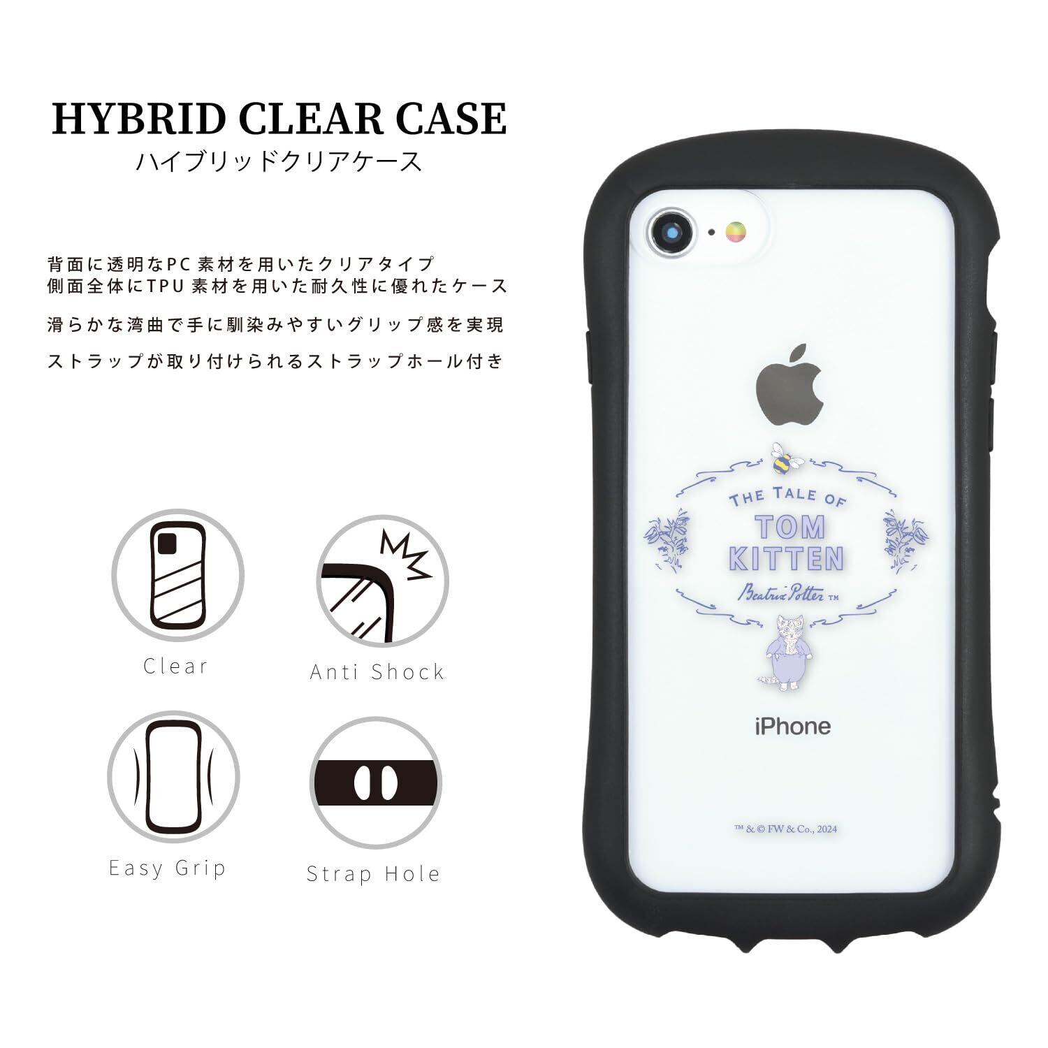 グルマンディーズ ピーターラビット(TM) iPhoneSE(第3世代/第2世代)/8/7/6s/6対応 ハイブリッドクリアケース トム PR-98B