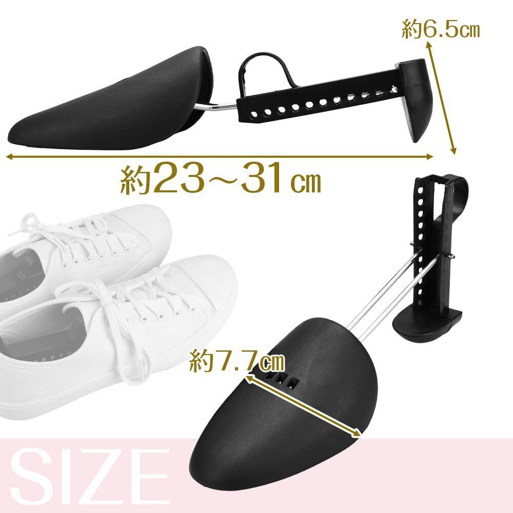 【セット内容】シューズキーパー×6双 【サイズ(約)】全長:23cm~31cm (アジャスター11段階 約7.3mmずつ微調整可能) 幅:7.7cm 【カラー】ブラック 【材質】プラスチック