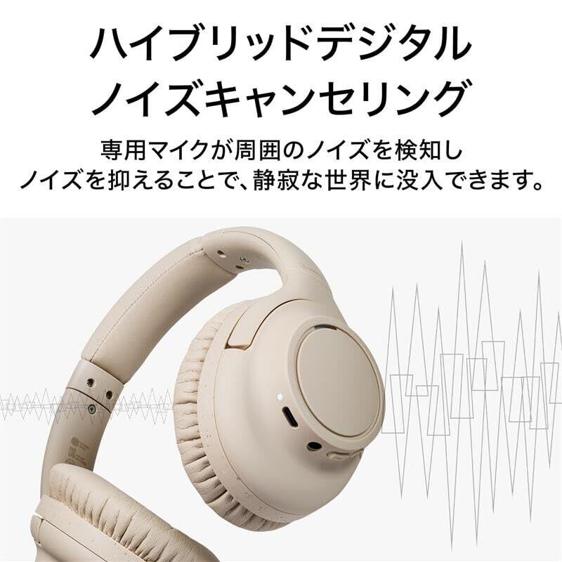 テレワークでも便利な2種類のマイクと疲れにくいイヤパッド:ヘッドホン本体にマイクを内蔵。Bluetooth接続でも高音質な通話が可能。充電が切れても有線接続で使用可能なマイク内蔵リモコン付きコード(1.2m)を付属。状況に応じて切り替えることができます。 耳を優しく包み込む厚めで耳触りの良いイヤパッドを採用。長時間の使用でも疲れにくく、優しい装着感を実現しています。
