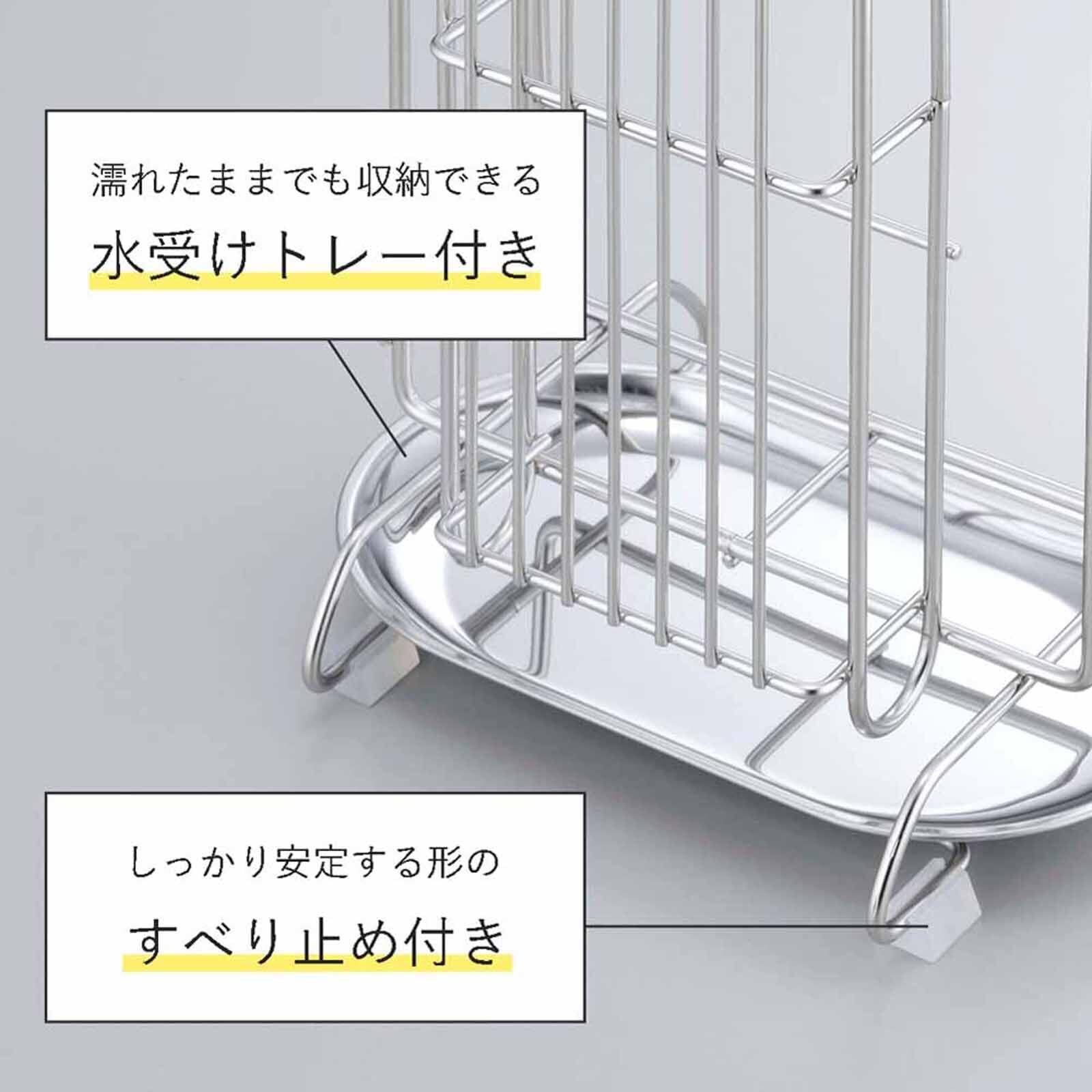 下村企販 まな板 包丁 スタンド 水受け付き 【日本製】 包丁2本収納 丈夫 滑り止め付き 水切り 包丁立て 包丁ラック ステンレス 燕三条 39568