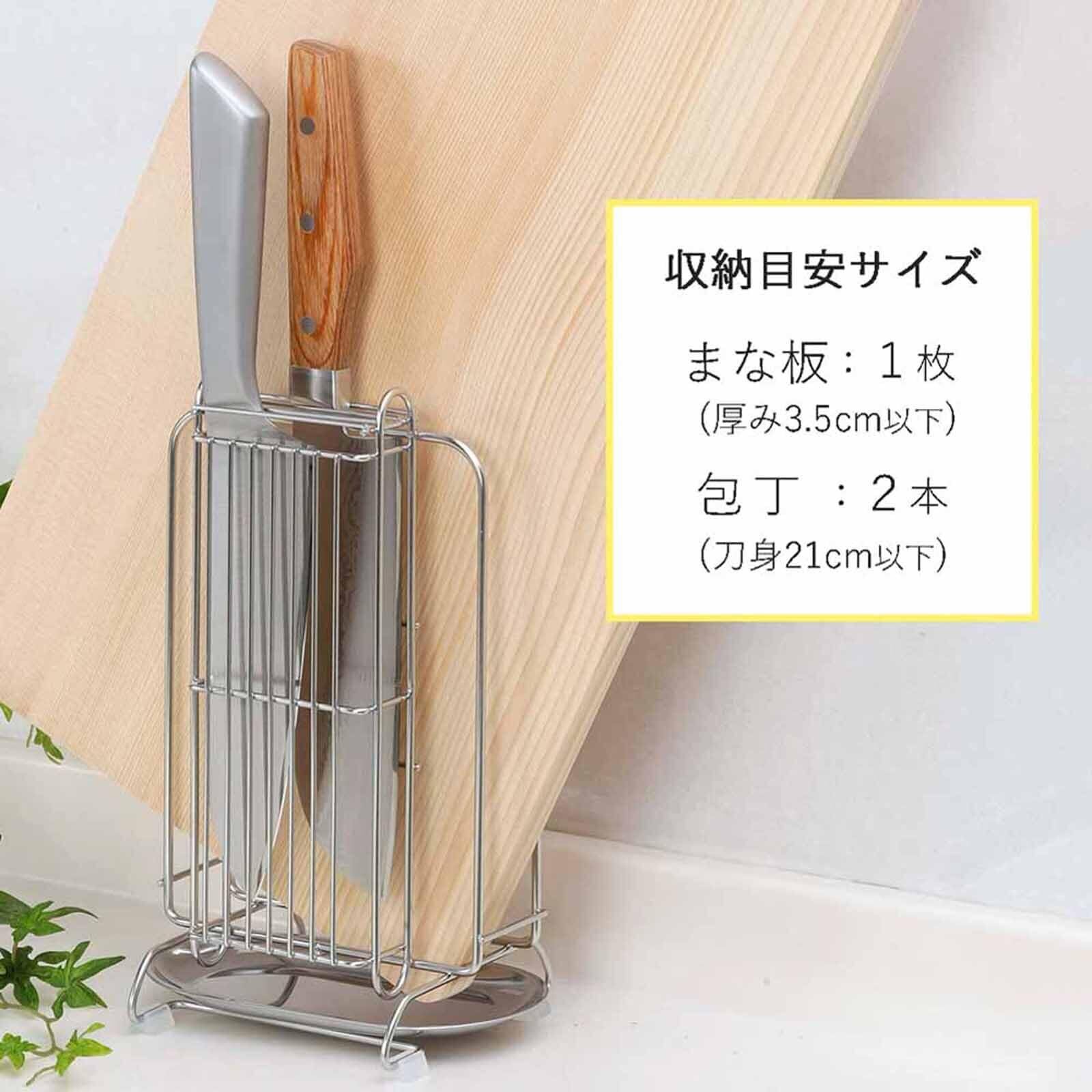 ※まな板の厚み3.5cm以下、包丁の刀身21cm以下が収納可能