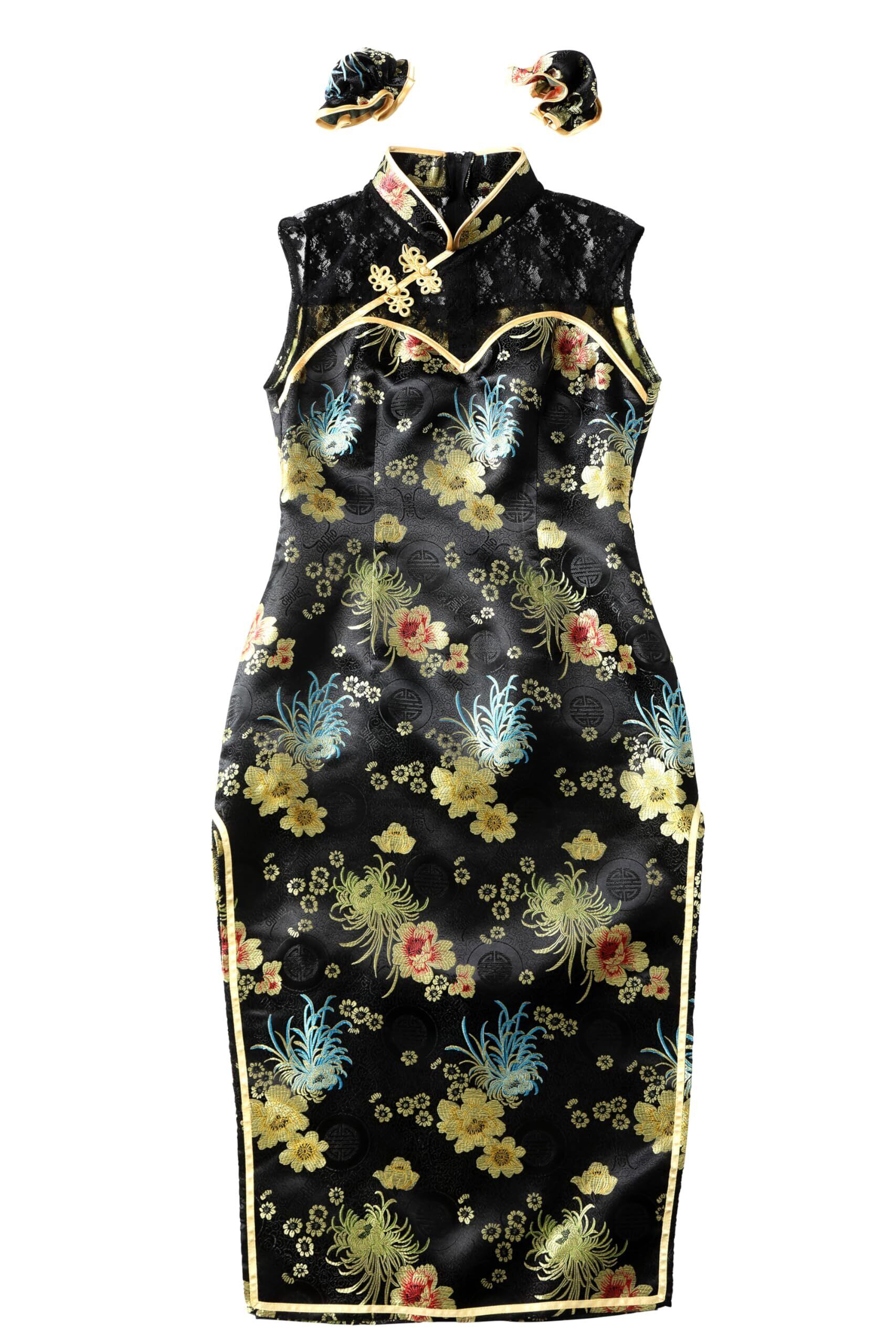 黒がベースのクールなチャイナ生地にゴールドのパイピングがポイント。