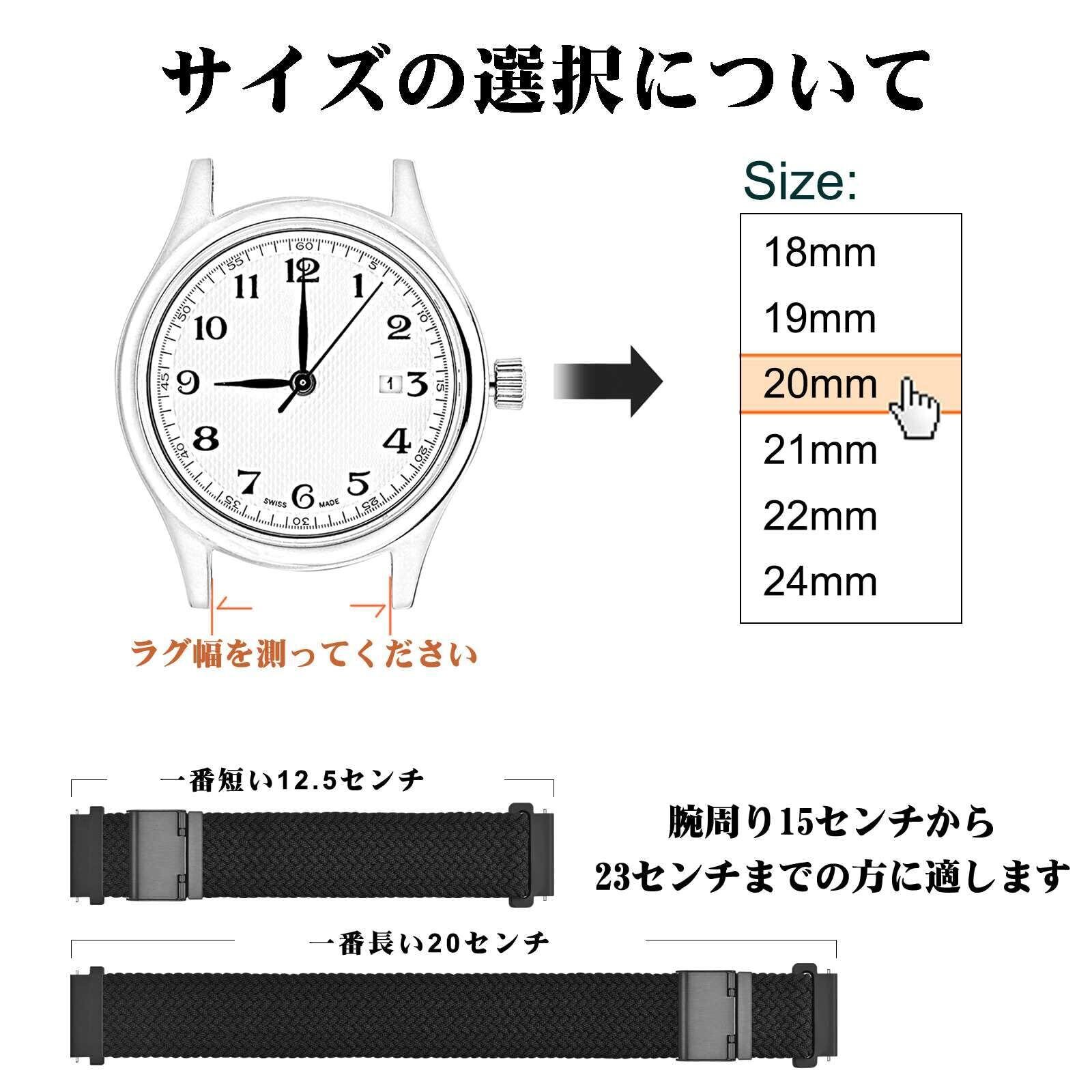 [WOCCI] 18mm 19mm 20mm 21mm 22mm 24mm 時計バンド ナイロン 時計ベルト 無段階調整 スマートウォッチ交換用バンド