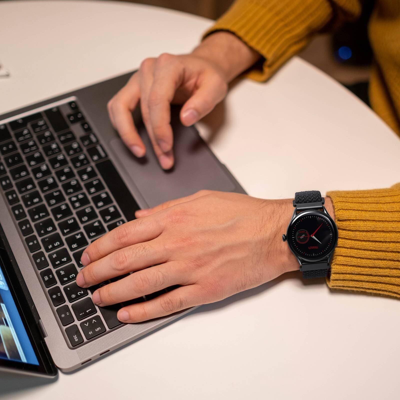 【無段階調整】手首サイズを自由に調整できるブレイデッドソロループ風時計ストラップです。バックルの位置を調整することによって緩めが好きな人もキツめが好きな人も手首サイズを自由に変えることができます。