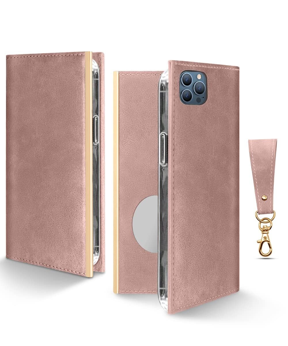 OCTERR iPhone 13 ケース 手帳型 鏡付き マグネット式 スマホケース 財布型 アイフォン13カバー カードポケット スタンド機能 携帯ケース ダイアリーケース PUレザー 女性 耐衝撃 全面保護 ファッション おしゃれ 美しい アプリコットピンク