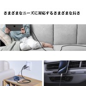 【使いやすさ抜群!1mの長さで自由自在に!】ケーブルの長さはちょうど良い1mで、デスク周りや車内など様々なシーンでの使用に最適です。柔軟性に富んだシリコン素材により、絡まりや破損の心配が少なく、快適にお使いいただけます。