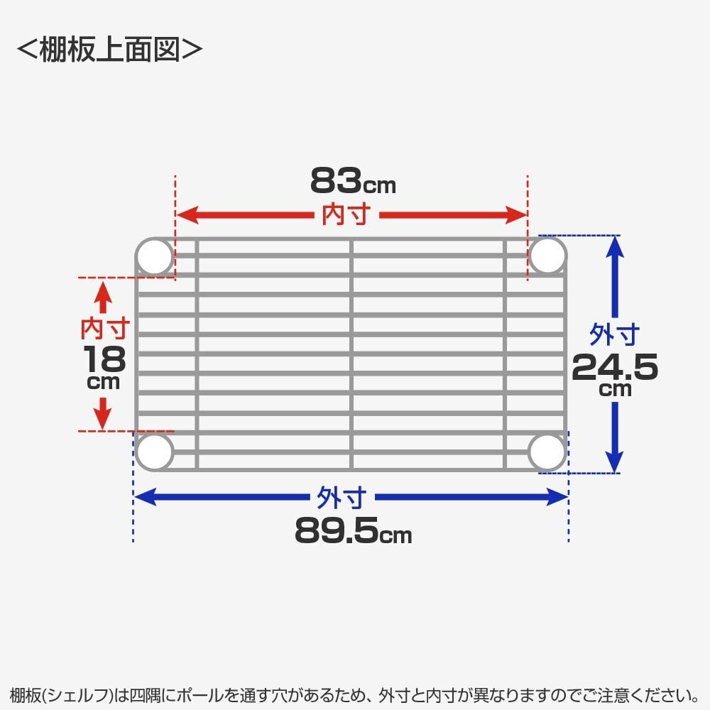 セット内容・付属品:スチールシェルフ(棚)ライトシリーズ スリーブ(取付部品)付
