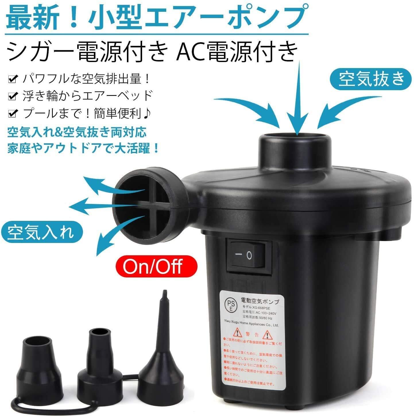 電動エアーポンプ 電動空気ポンプ 空気入れ 空気抜き 両対応 AC電源3種類のノズル付き PSE認証済み 小型 コンパクト エアープール エアーベッド 浮き輪 ゴムボート 日本語取扱説明書付き 家庭用AC 100V