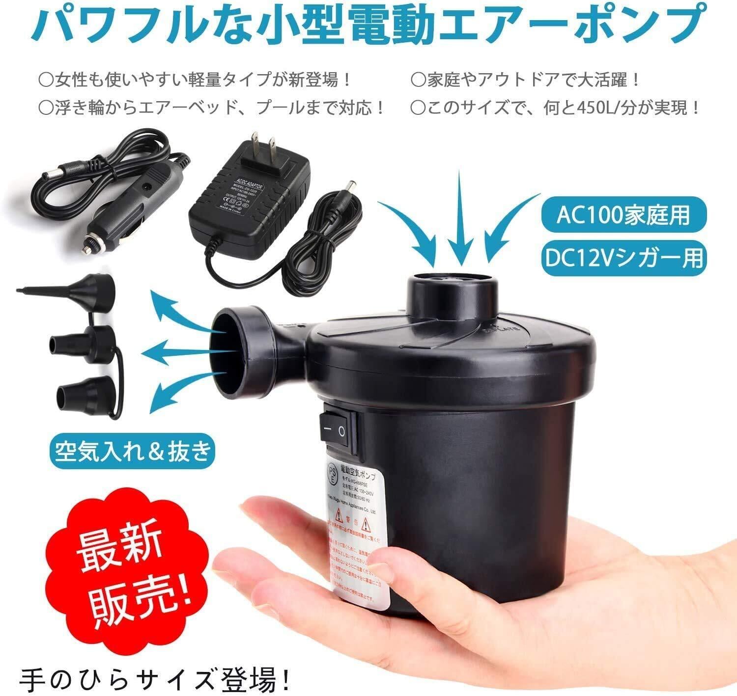 【「電動エアーポンプ」で、あなたのアウトドアライフをもっと楽しく!】今すぐこの便利な電動空気ポンプを手に入れて、空気の出し入れをスムーズに行い、楽しいひとときをお過ごしください!