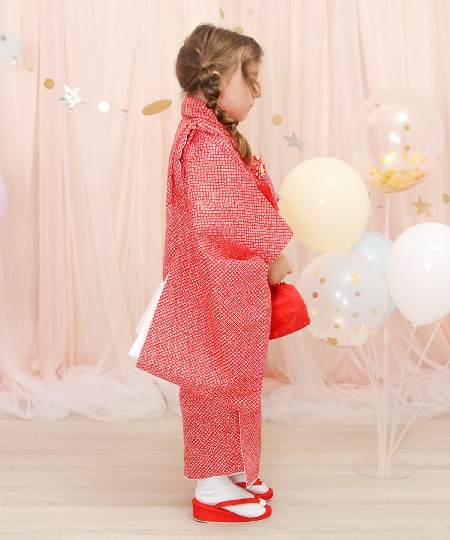 【快適な着用感も大切!】着物は柔らかな生地を使用しており、着心地も抜群です。また、サイズ調整が可能なため、お子様の成長に合わせて長くご愛用いただけます。大切な日を心から楽しめるよう、デザインにも配慮されています。