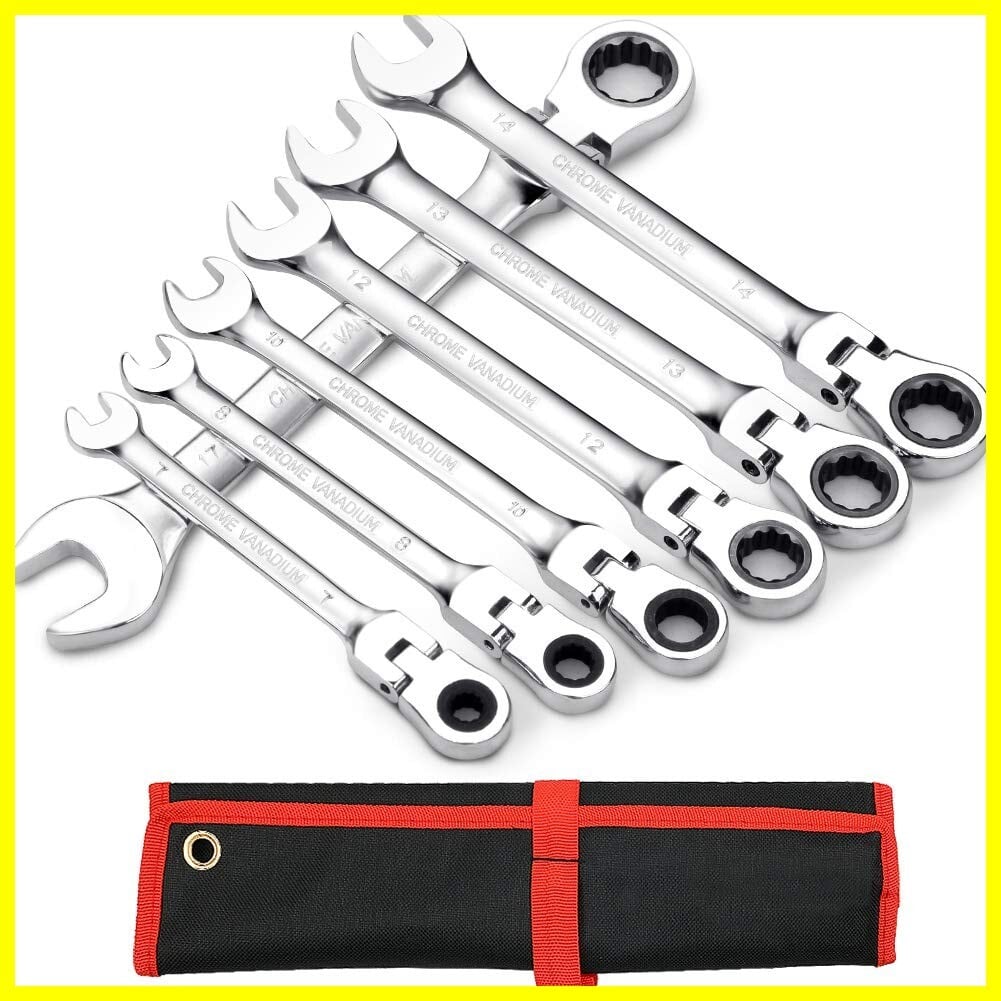 Youtumall フレックスラチェットレンチ 角度調整可能 72ギア ラチェットコンビネーションレンチセット 7~17mm 7本組 両用ヘッド 首振りラチェットコンビセット 収納ポーチ付き