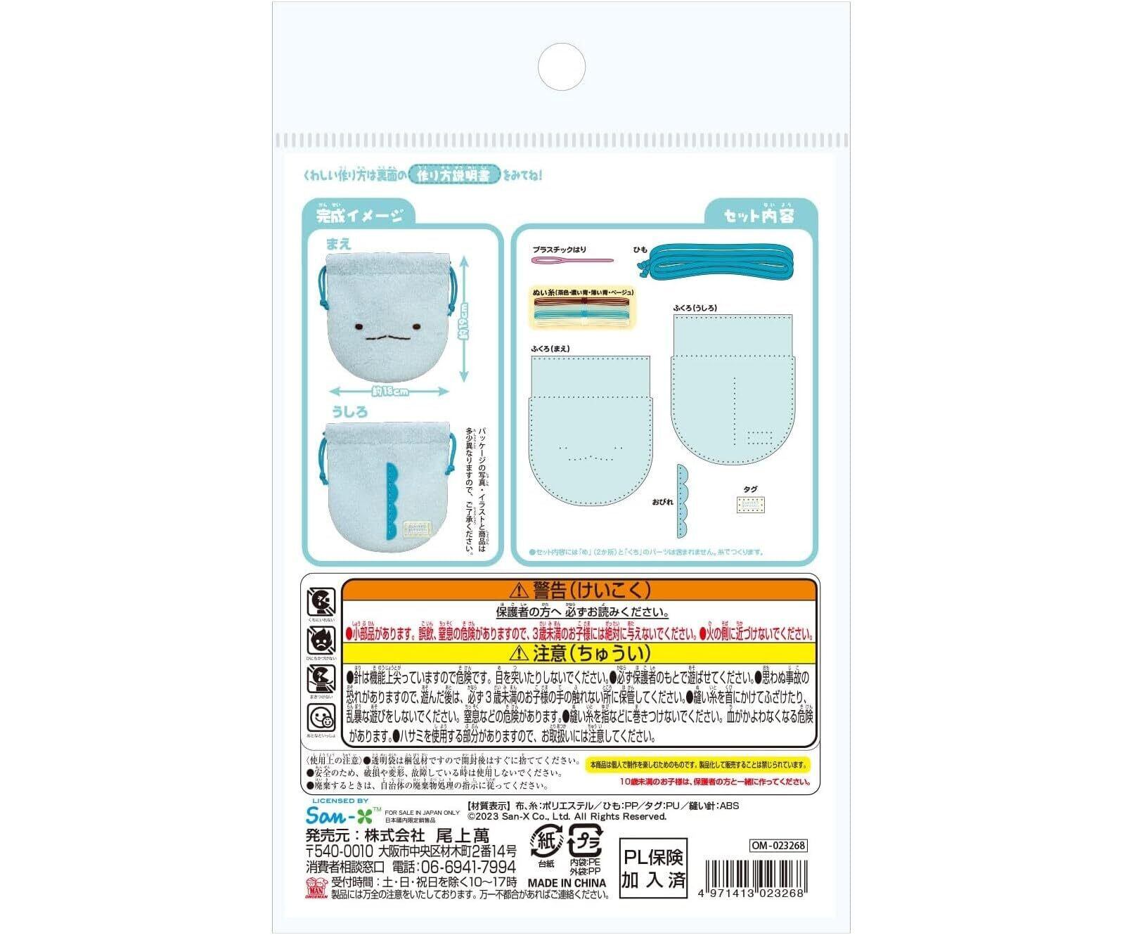 尾上萬(Onoeman) はじめての ソーイングキット きんちゃく すみっコぐらし とかげ OM-023268