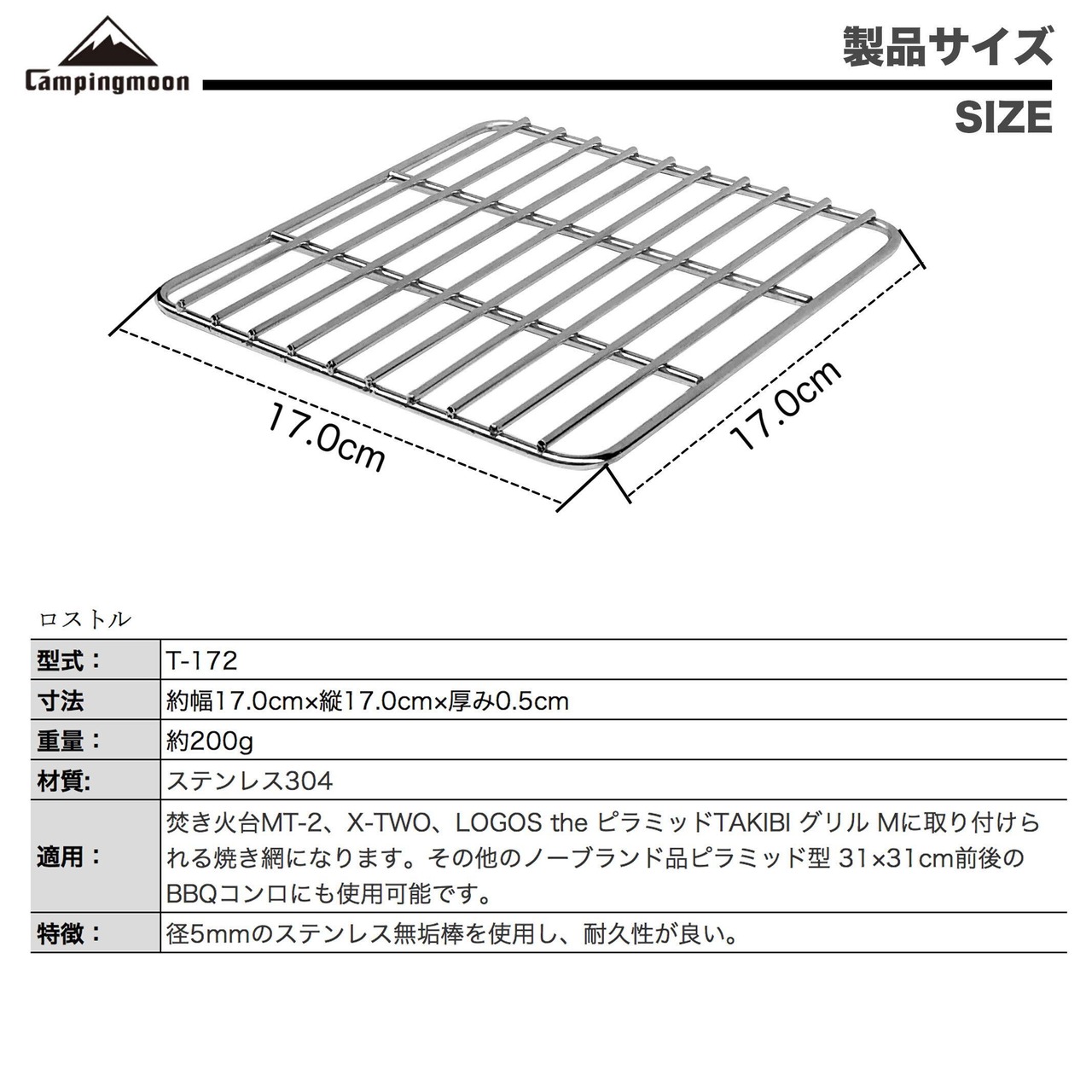 キャンピングムーン(CAMPING MOON) ピラミッド型グリル M ステンレス製 ロストル 17x17cm T-172