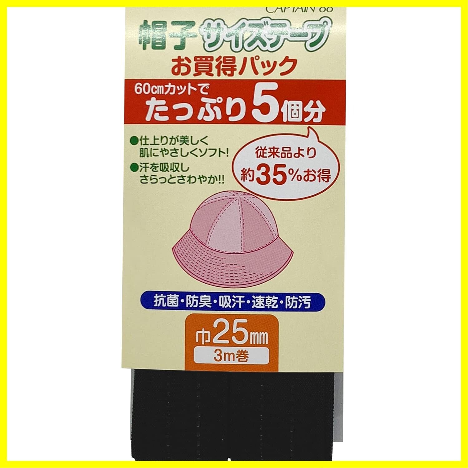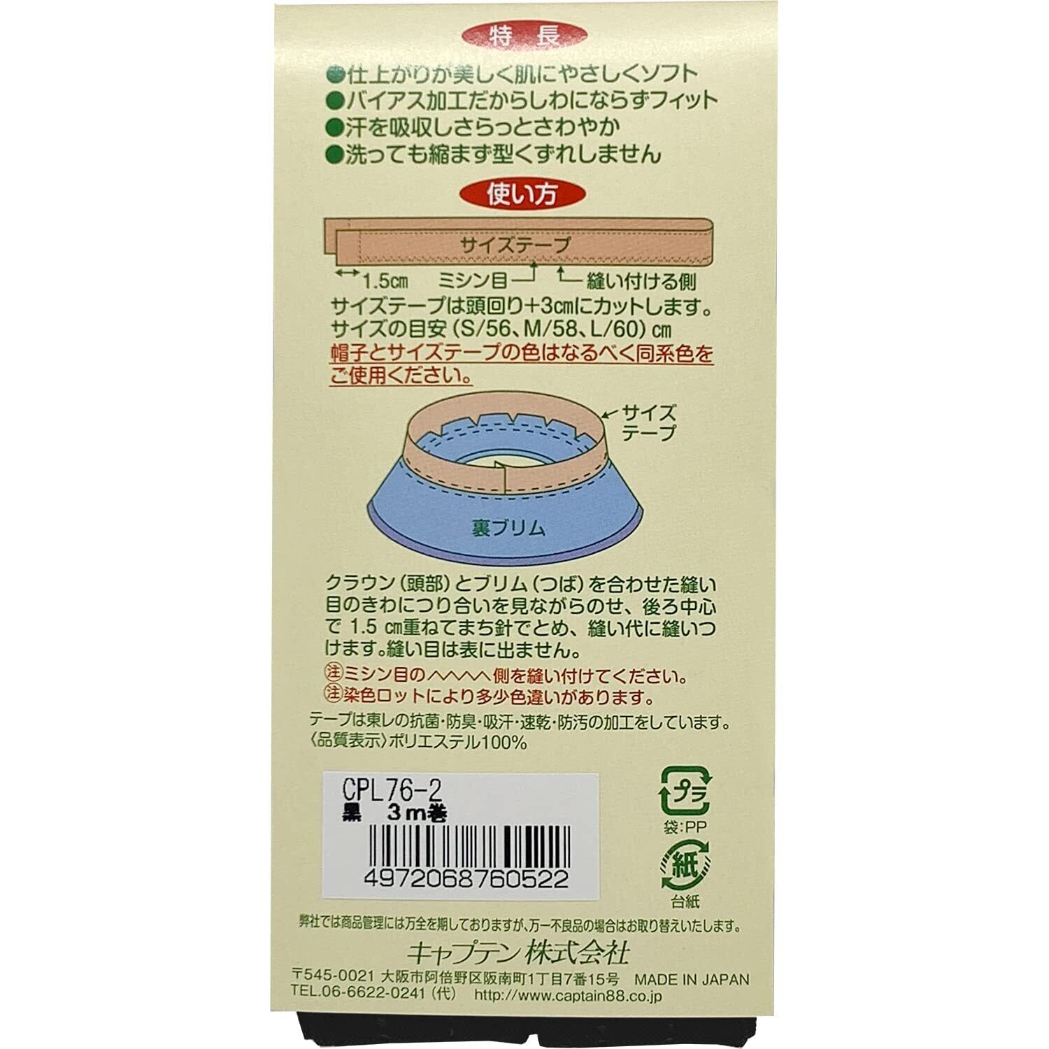 CAPTAIN88 キャプテン 帽子 サイズ テープ 巾25mm×3m巻 #2 黒 CPL76