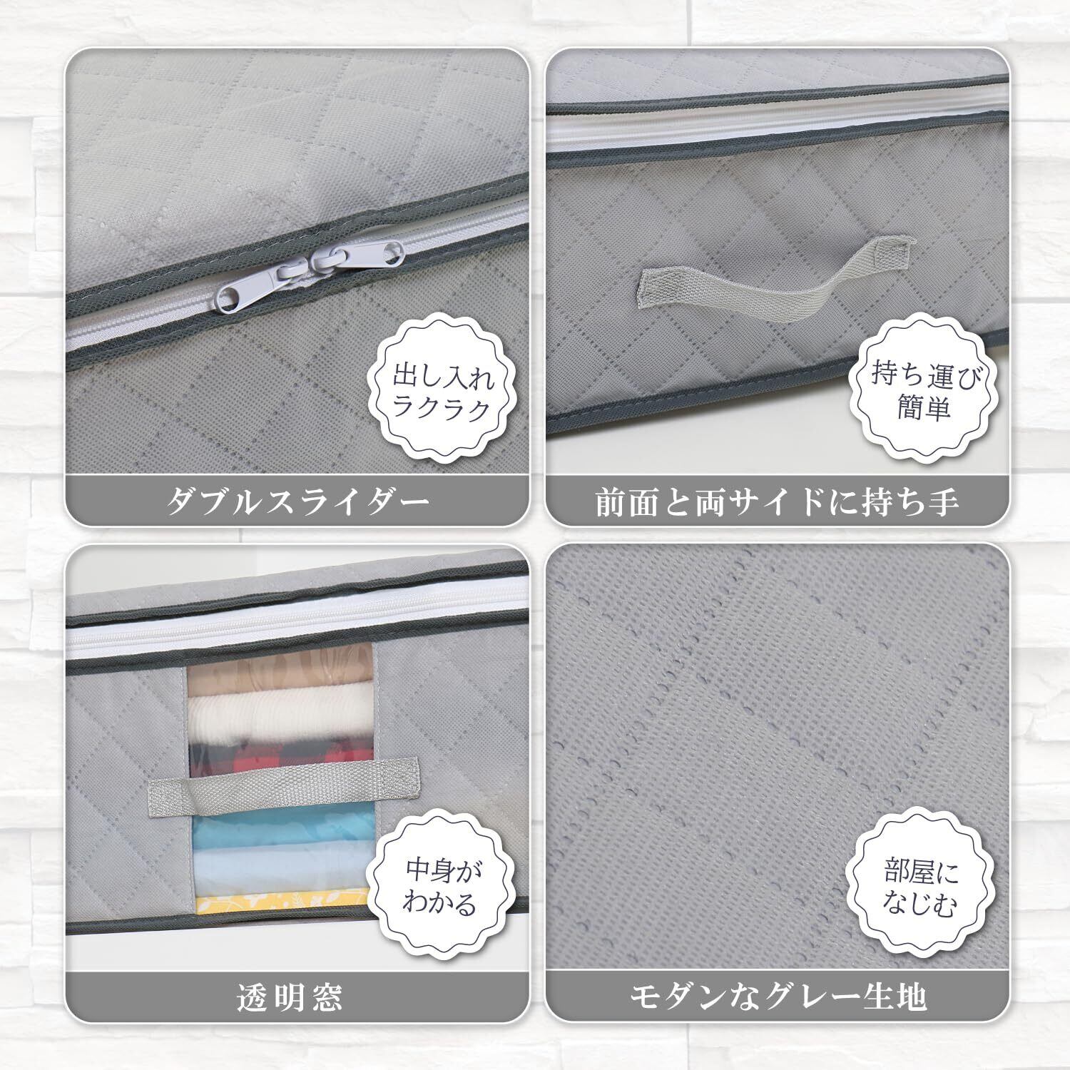 【持ち手付き】:両サイドに持ち手付きでベッド下からの出し入れや持ち運びもラクラク。クローゼットの上部の棚や押し入れの隙間などにも。