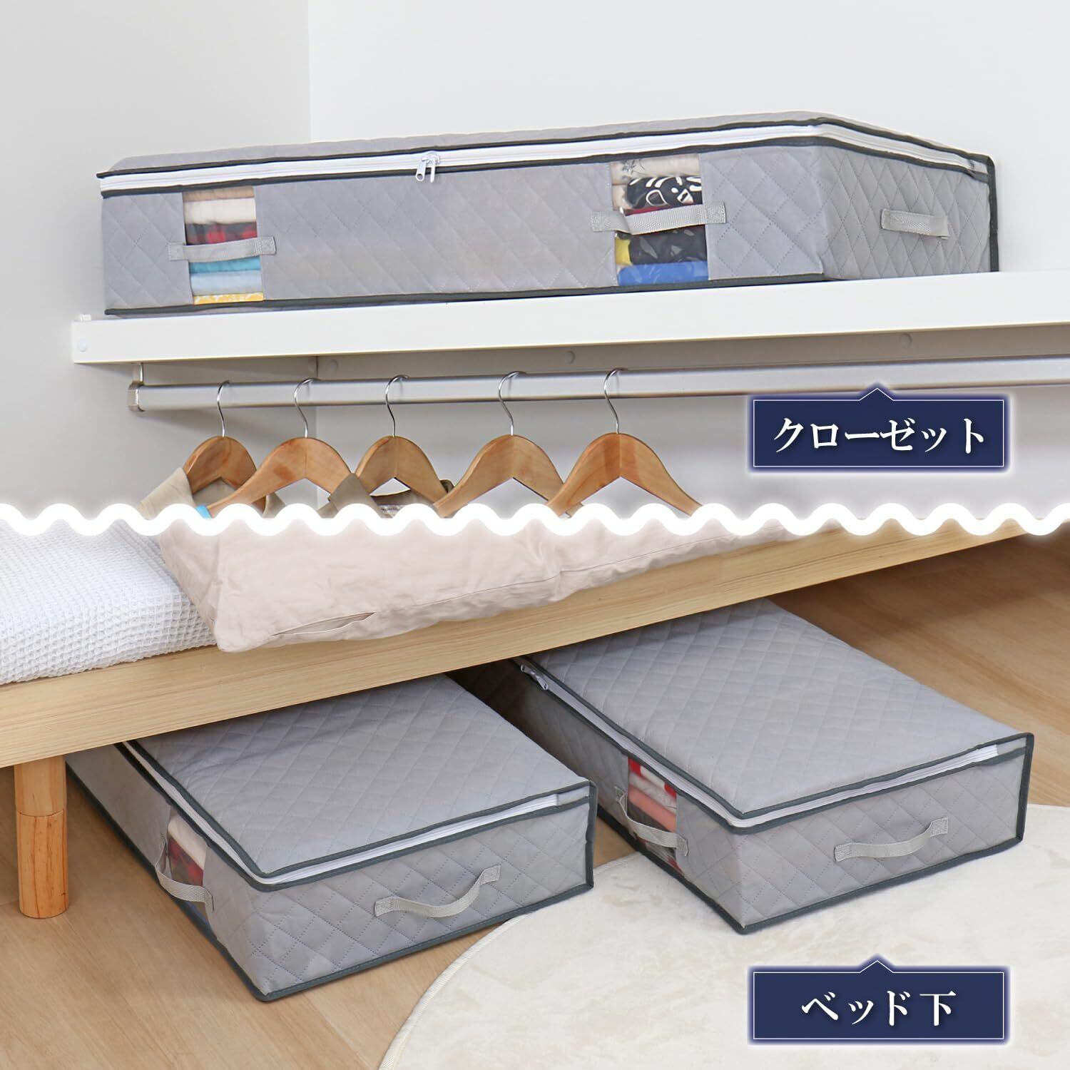 ●ベッド下のスペースを有効活用。オフシーズンの衣類を収納することで、クローゼットの収納スペースを確保できスッキリ。ベッド下に縦向き・横向きどちらの向きで置いてもOK。