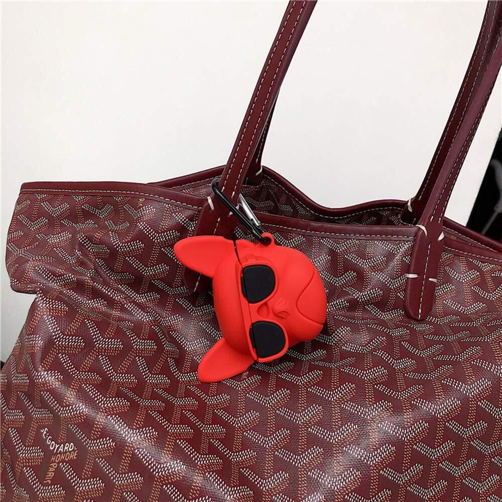 AirPodsPRO AirPods 用 ケース カバー エアポッドケース マスコット かわいい ワイヤレス充電モデルも対応! 犬 キャラクター カラビナ付き (レッド, AirPods Pro)